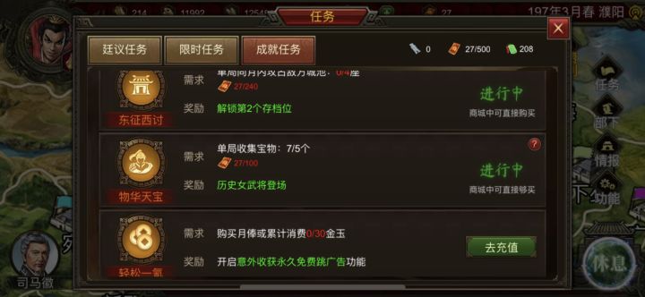 玩剧本模式,每回合结束的同盟、招募、等信息能不能加上可以自动运行跳过的设置,(如果玩过三国志的玩家应该都知道有这个设置,从十几年前的远古版本就有)可以分为仅限手动、快速、中速、慢速,四个设置选项,我估算一下,每回合结束这类陈情信息最少要出现五次以上,玩家就要重复手动点击五次以上,为何要让玩家重复这种无意义的点击操作呢?手游玩的是简单,便捷,我年初的时候就提过这个建议,奶牛也说会有一个方案,现在已经
