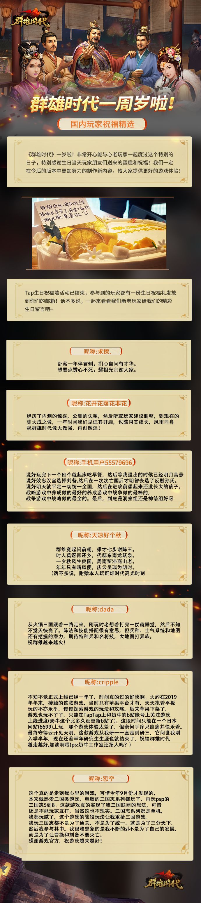 【群雄时代】群雄迭起 共贺周年 | 生日祝福精选
