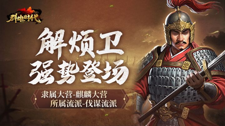 主公大大们好~在今天的更新后,解烦卫也在《群雄时代》中正式登场!大大们可以选择【治所】-【兵营】来解锁特种兵噢!解烦卫作为输出与控制兼备的兵种,有着更容易对敌人施加狐疑状态、同时给予敌军与周围目标大量伤害的能力,且自身所有攻击均不会打醒狐疑目标,在多种场合可以发挥意想不到的效果。为了庆祝这一时刻,我们也面向所有玩家开启双(fa)活(fu)动(li)🎉,邀请各位主公大大发表与解烦卫相关的攻略与