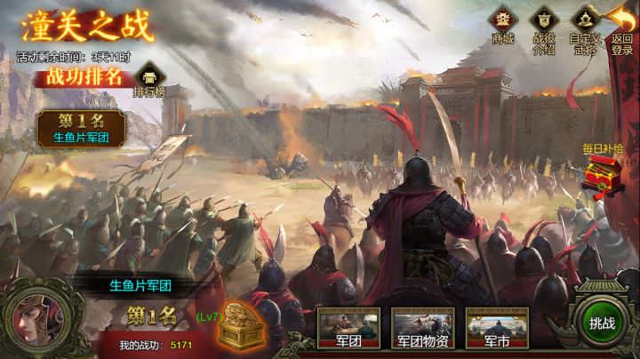 各位主公好~5.0.0版本“兵临城下”即将上线,今天将给主公们带版本相关内容介绍~战役—“潼关之战”简介 建安十六年(211年)三月,曹操派遣钟繇、夏侯渊率领军队出河东,试图经过马超等两周军阀的领地进攻汉中张鲁。马超认为这是曹操的假道灭虢之计,于是联合关中诸将欲起兵抗曹,著名的“潼关之战”就此拉开了序幕。胜利条件:击溃曹操部队即可结束获胜。战功说明:战役任然采用战功越高排名越高的规则,战斗