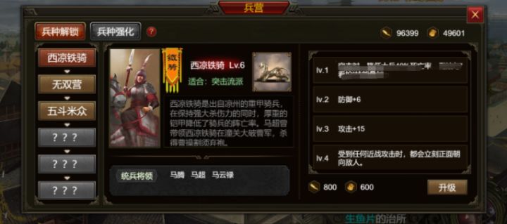 各位主公好~5.0.0版本“兵临城下”即将上线,今天将给主公们带版本相关内容介绍~更新之后治所中会新增了“兵营”建筑,点击后可以看到特种兵界面,通过战役或活动中获得的道具(武勋)可以解锁和强化特种兵。【特种兵类型】本次更新后,开放三类特种兵,每个兵种对应一个“兵符”道具:●西凉铁骑西凉铁骑出身在凉州,这支军队乃是马超率领下骁勇的重甲骑兵,专门集中突击敌人薄弱之处,令敌人闻风丧胆。曾经在潼