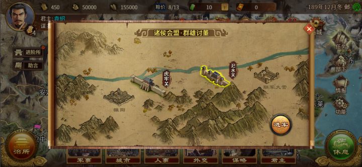 东汉末年,董卓乱政倒行逆施,擅自行废立之事,一时之间,天下哗然。桥瑁借机发榜,召集天下英雄,一同讨董。本次周年庆版本更新后,我们将为大家带来全新霸业剧本『诸侯会盟·群雄讨董』,下面花花简单为大家介绍一下~【玩法特色】本次霸业剧本中,我们为大家带来以下新玩法内容:● 新增战斗地图:本次霸业剧本中,主公们将扮演袁绍势力,亲身在 全新的战斗关卡地图『汜水关』『虎牢关』中与 吕布及其精锐部队 进行正