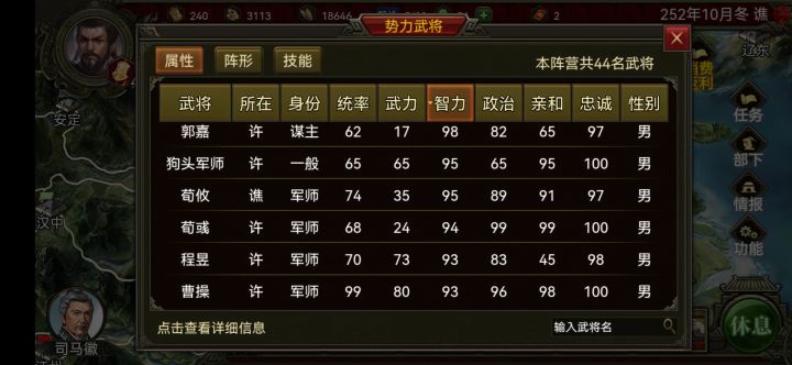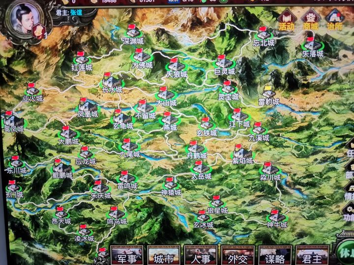 收曹操军团,前期军师两万守一个城,当然在配个武将就很完美,这是跟电脑学的,不能打架的集体到一个城做内政,做满就下一个城,以许为首都,因为那里人口是全图最多,一波能招五千,现在我终于体会到当年曹操的处境了,现在该打谁跟谁结盟,北上,东进,南下,还是去做西凉王,娇妻美妾又在哪,粮草钱粮全势力最低