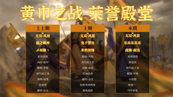 荣誉殿堂 | 再创新高!黄巾之战排行榜!