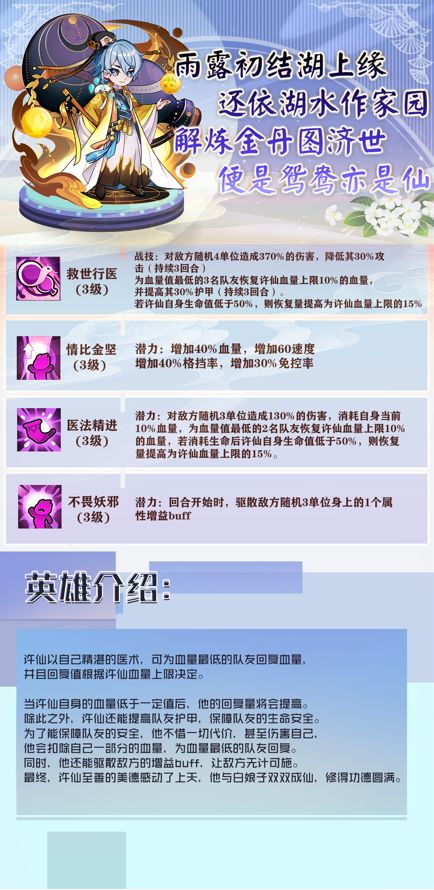 各位亲爱的萌主:您好!《无双萌将》在各位萌主的陪伴下即将迎来了第四十五周的固定更新。本周的版本活动时间为:10月15日00:00—10月21日23:59:59。我们一起来看看本周的版本更新内容吧。【新增版本内容】1、御灵召唤新增英雄——许仙、九天玄女;2、辉煌四系英雄自选箱新增英雄——许仙;3、战神自选箱新增英雄——九天玄女;4、新增许仙限定装束——悬壶济世;5、御茶园新增任务,