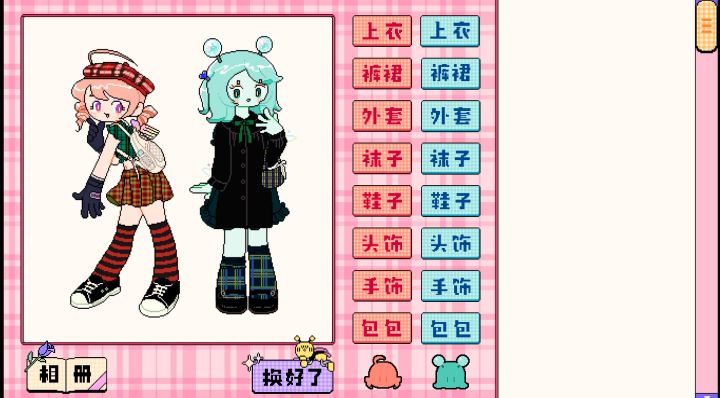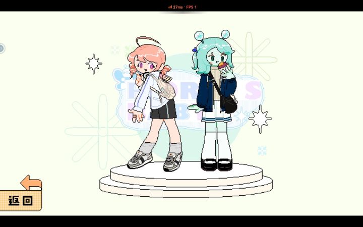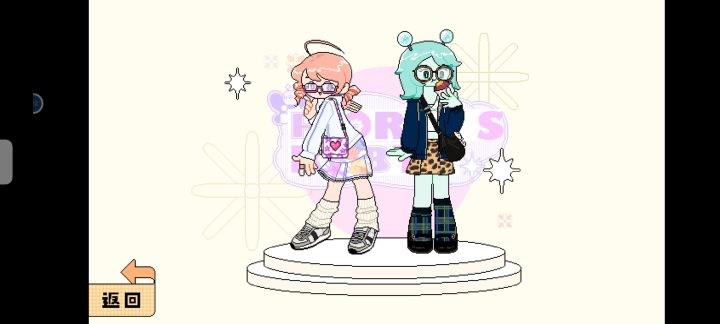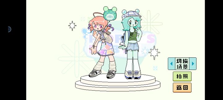呜呜呜设定是闺蜜出道组合idol系列这个是简单的游戏界面介绍。就是换装游戏啦可是画风太好看啦!打歌服就是p1粉粉的芮芮是vocal,然后蓝蓝的蓓蓓是dancer,两个人本来是普通的女孩子因为想受欢迎就出道啦,想法是做类似B站up主一样发歌编舞,传递正能量!正在相互扶持一起进步ing!(名字是我从表情包里面知道的hhh)因为还在起步阶段所以两个人住在租的一个宿舍,还会一起出来买菜散步,是不是