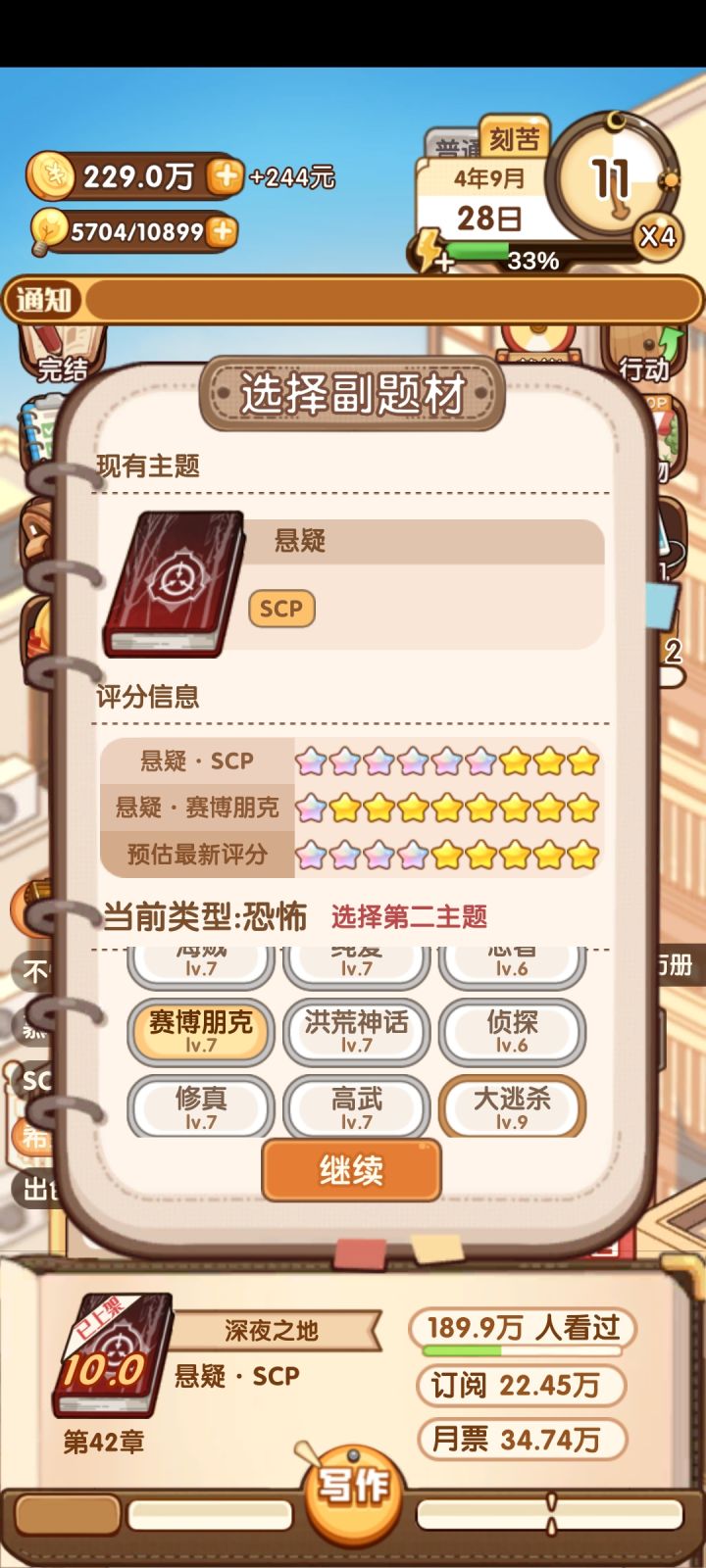 每次添加副主题都显示当前类型恐怖,这个游戏的题材库里就没有恐怖选项啊,真的无语