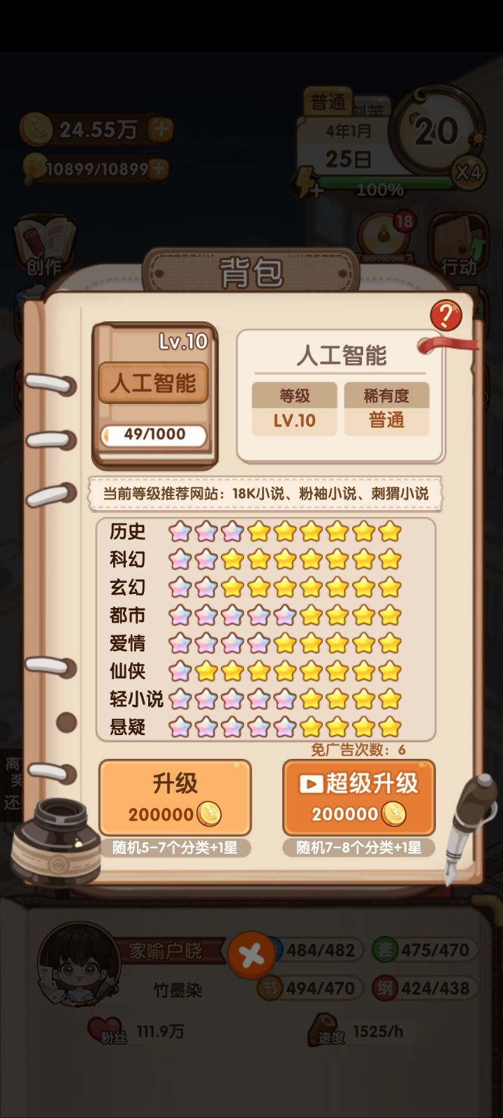 要不下次给存档加个密啥的,一直不满星,气不过爬文件里边找存档去了,然后,然后就没意思了,因为钱和能力粉丝什么的都能改,而能改后再想玩就提不起兴趣了