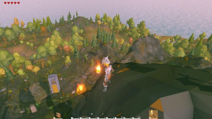 相信各位玩家经过摸索阶段,对于游戏有了一定的了解,也已经对于出生岛这个小岛各个地方都熟悉了,或许已经开始准备建造船坞去下一个小岛探险了,在长时间的物资准备工作中,玩家肯定对重复性劳动感到无趣了,那就让我们在砍树挖矿之余,来一次地心探险吧。首先在入口处点燃一堆篝火,从山顶望去是这样的一个位置,这就是我们这次探险的起点。在篝火处有这样一个山洞,进入山洞探险,准备工作当然要齐全,譬如说工具和照明火把