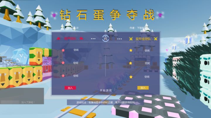来啦来啦,小艾来啦!你们的小艾带着新图推荐来向大家进行新一波安利啦!这次要推荐的小游戏叫做——钻石蛋争霸赛~名字叫《钻石蛋争霸赛》,游戏自然也是要争夺钻石蛋啦~且不管这个“钻石蛋”是个什么东东,看到了之后只管上去抢就是了!游戏分为两个队伍,岛友们可以随机选择其中一个队伍加入,在进入游戏之后,首先需要在六个职业之中选择其中一个职业,每个职业都有各自的武器和攻击方式。在游戏中同样是通过W、A、S