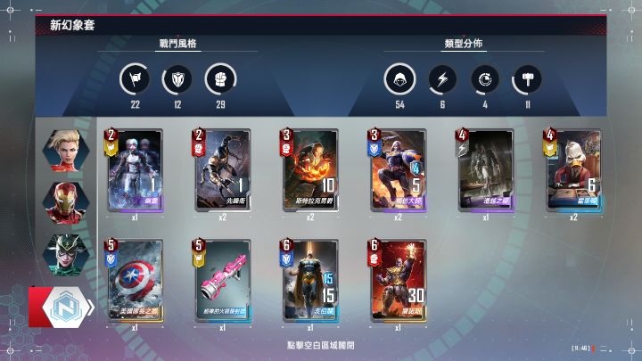 中立卡组: 猩红女巫为中心,可以给其他场上五个有关键词(就是你卡所属的阵营)加buff。交叉骨和女巫在早期可以巧妙搭配。索尔卡组:throg是坠强的!所以他用了4张。Horrible Chopstick已经成为了阿斯加德牌组粉了,真的太好用了。buff throg也提高了他的能力。钢铁侠卡组: 4费卡是钢铁侠卡组的中心。 4费跟5/6费相比更容易升星。海拉卡组:用 破坏者 和女巫搭配,加上