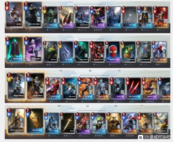 这个游戏的港澳台服要来惹,身为一个老东南亚服玩家,也非常开心可以看到更多的新人加入到漫威对决的大家庭。很多玩家到时可能会觉得爬天梯爬到一半会被虐菜很痛苦,所以搬运了一些攻略帖(可以去官方discord频道查看更多的大神攻略!)过来,希望会对各位有所帮助~包括了钢铁侠和蜘蛛侠和雷神 (这个游戏的乐趣在于可以同时放三个英雄和中立的卡在一个卡组)不仅如此这个卡组还非常的新手友好,他考虑到像我这种非