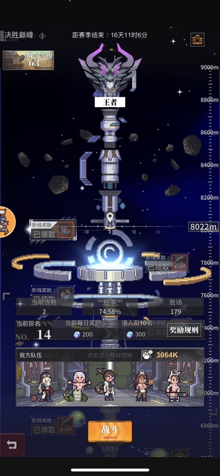 首充6元+商会68元+方舟皮肤30元算微氪或者平民吧之前卦多的时候都是半夜打或者一大早打这几天感觉挂少了些,今天试了一下,终于巅峰啦白嫖完所有奖励就收手,嘿嘿记录一下