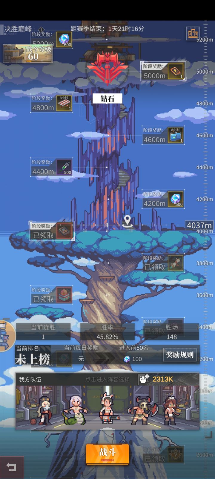 就这战斗力,这胜率,巅峰是不是不用挣扎了。还有一天是不可能了吧。遇到的都是二次战斗力比我高的,一次战斗力比我低的。这位置卡了估计有100盘,含输的