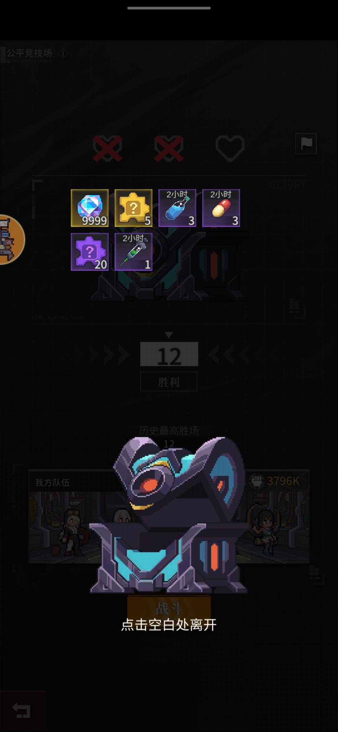 12连胜了。最后一把对面美杜莎空血了,直接不动了,上面显示对方已切换后台。搞得我好方,还好时间一到,系统动了😓。真的那一刻害怕了