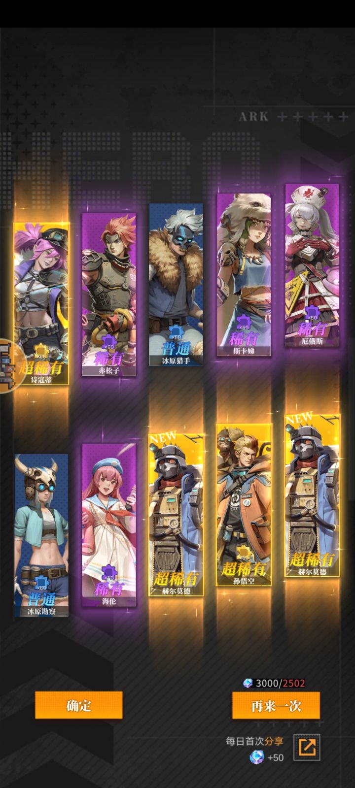 别的ssr好少啊……嫦娥和阿瑞斯都热寂了,别的最多聚变。哎~😅