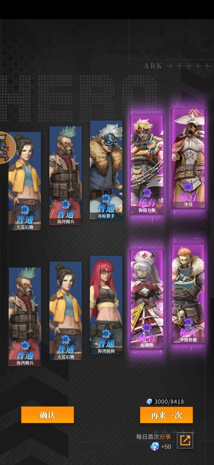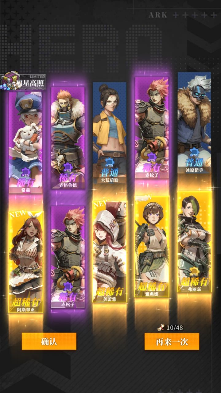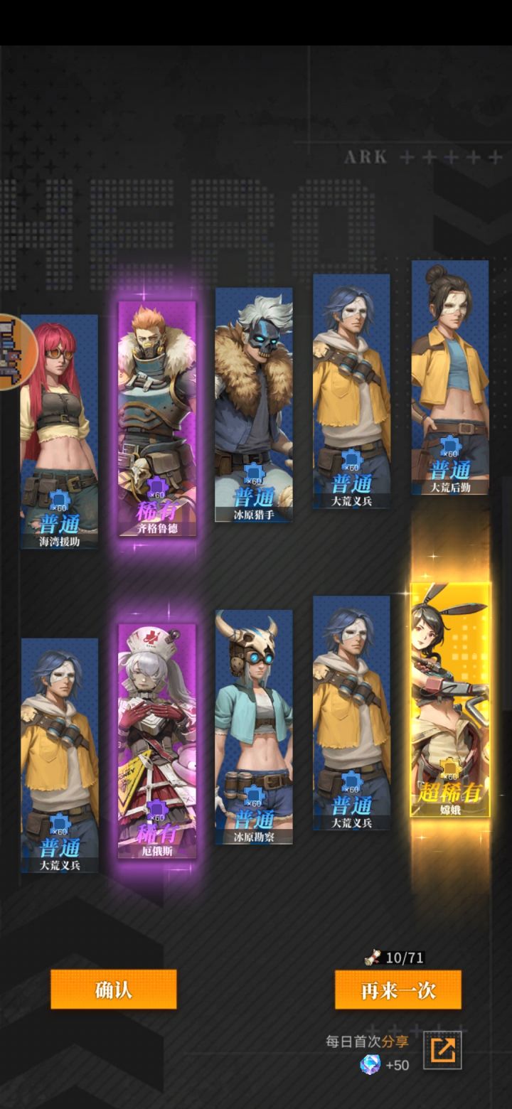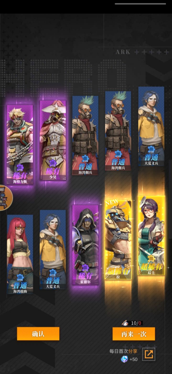 别秀那自以为很欧的抽卡记录了,看着ssr怪多,一看都是新获得😅。不过是官方让你爽一下下,留人罢了,后面越抽ssr越少,这时候你就会看到直接送ssr的氪金礼包喽😋。另外ssr有近50个,拉满一个要9个相同的😅跟我之前没事玩的闪烁之光似的,抽个五星,最后升到十星是吧😅 十抽出四个已拥有再炫吧😃,现在只有氪佬可能做到吧。