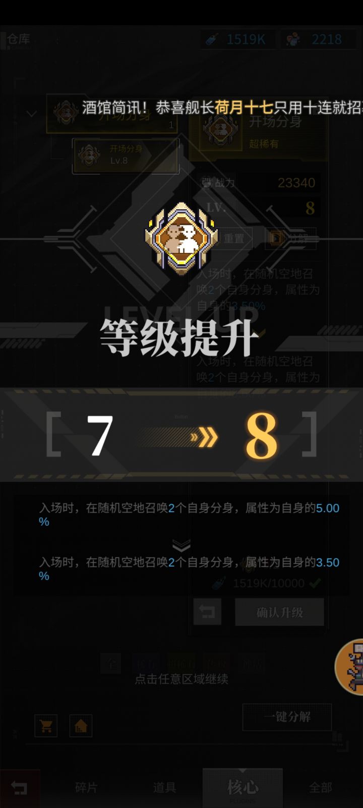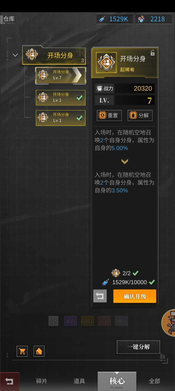 这是BUG??.核心7级升到8级属性还他吗给我降回去了????这是什么操作😂😂半成品游戏吗我还以为我幻觉