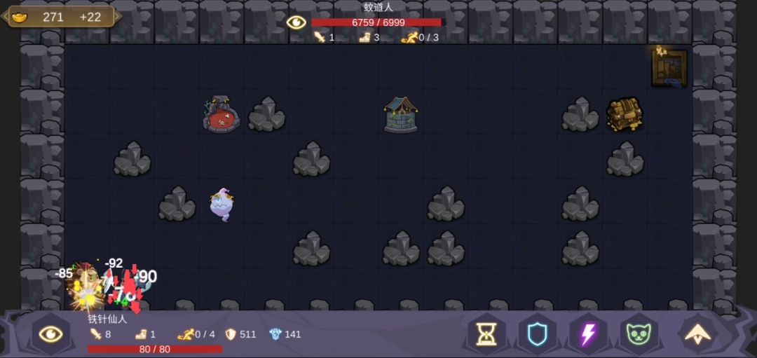 铁针仙人,开局前期选给钱的,然后选防御剪刀,再次防御反击,在51关前,卖掉给钱的佛珠,买防御剪刀300一个那种,超过蚊道人的攻击力(139)就行,剩下的钱买反伤甲,然后就一直点防御。一步不动直接消耗死蚊道人😂