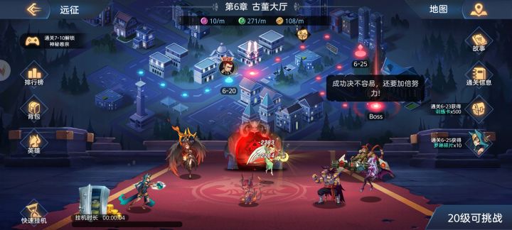 20级才能继续打玩着还好吧,练一队就好了有个东西叫训练中心,啥时候解锁的忘了,反正一下午时间就19级了,像我的这幅图,有四个冷却时间那四个空,就能放四个任意没练的角色进去,既我的队伍中最低等级32级,直接没练的四个角色变成32级,并且连升星也一并进去,既从零开始直接变绿色+1,就是卡等级,真的超烦!早上开了好多小号,选了狼族的双黄开局的,玩着还好吧,没有评论中那么不堪,不懂我说的我可以详细
