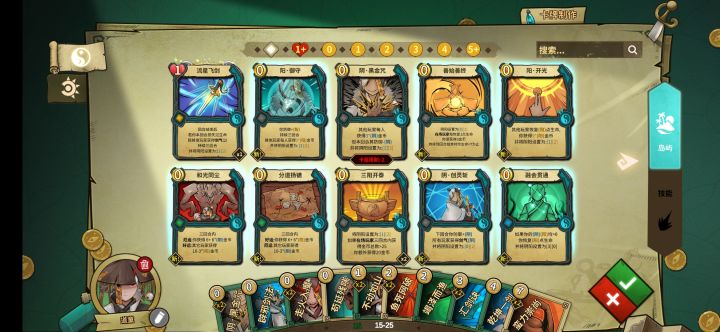 刚开始玩,还有很多不熟,最近盗贼多,感觉好用,生存能力也可以。岛屿红岛带的都是掉钱绿岛提前或者高费低伤卡片,绿岛回血,绿岛提前。技能叠被动,偷钱,叠被动偷钱,后期还会优化,有时候还是会卡手(抽不到酣然入梦)