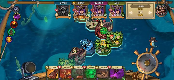 1.整张地图一共27个岛屿(包括两个复苏神庙和最终的一个圣殿)2.每局比赛的黑岛大约在3~5个,除去这些岛屿,剩下的20个岛屿在玩家携带的40张岛屿卡中随机选择,那么这个排序按道理是有顺序的3.下面一局我不知道是出现了bug还是岛屿排序的逻辑ps:原来的顺序为24绿25红26红24号岛为绿岛但我使用了一张引狼入室是他变为红岛,那么25号岛就变成了绿岛,我又使用了一张诱饵,那么25号岛变成红