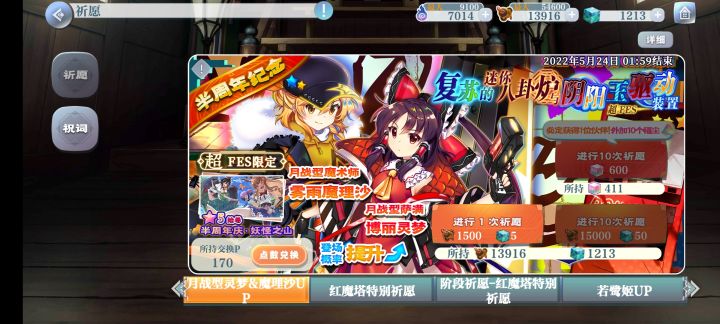 素材多攒点够倒是够,但真的有必要井出来吗(笑哭),上次月战妖梦就是靠官方救济搞了110抽才出来如果真是六月底出帝都七月出大芙兰那我真的会死的啊…虽然搞那么多只中了一个月战灵梦但是赚了很多新的伙伴以及割符大礼包(咱也不提爆率这回事了官方您进度能放慢点不?再这么搞下去会赶超日服的(
