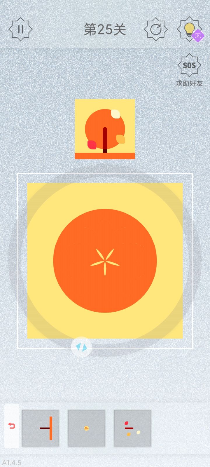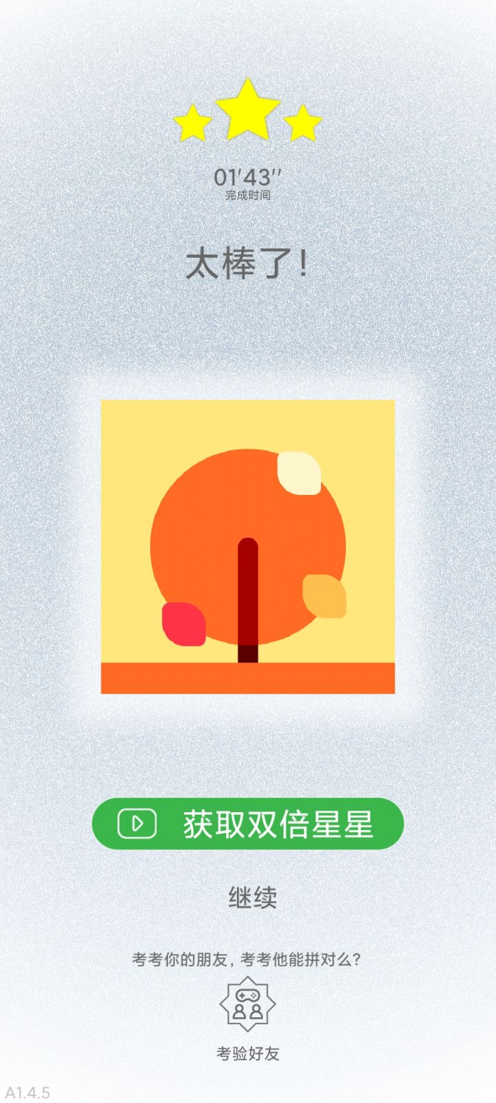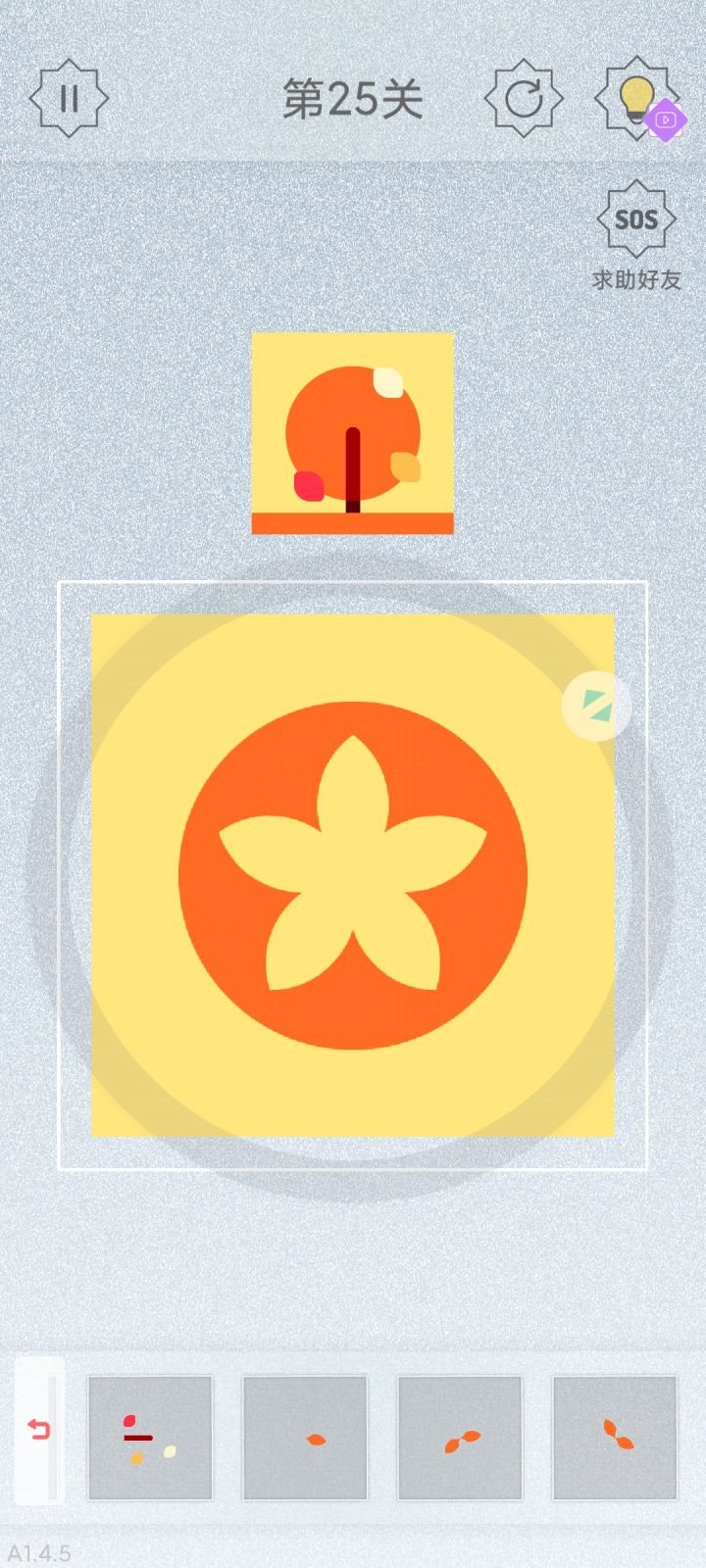 明明拼出来跟图片一模一样,但就是过不了关。可能是因为里面的图案没白对,里面要是个方方正正的花,但凡歪着的都过不去(我就这样卡了半天)花瓣填进去后像个橘子,这样才能拼对。