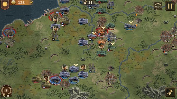 本关想要三星很难,主要是20回合巴黎很难打。我第一次过是攒出古帅推过的,现在提供另一种思路,实测可行。主要方法就是利用步兵要塞炮强行攻占色当左下机场空袭巴黎1. 开局1-5回合梅塞上坦克,博克上轻炮,三个步兵一个金牛座、一个猎鹰团、一个运输车。派一个装甲车往上跑去占友军城攒经济,其他部队从下方走攻占色当。 首回合可以SL古帅连击2. 5-10回合装甲部队、轻炮、运输车步兵走上路进攻阿拉斯