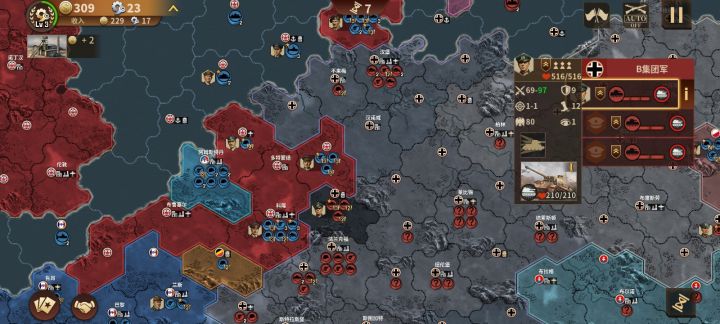 后三十回合基本只操作两个部队,然后让队友自动,然后队友恨不得小兵堆满地图。建议,增加人口限制,比如核心城市提供9人口,大城市7,中5,小3,步兵占1人口,坦2人口,船2人口,航母3人口,港口人口-1,工厂人口-2,船坞人口-2,机场人口-2……,然后4个步兵每回合吃一个金币,2个坦克吃一个,一个船吃一个,陆军进海消耗加倍。征服模式中生效。