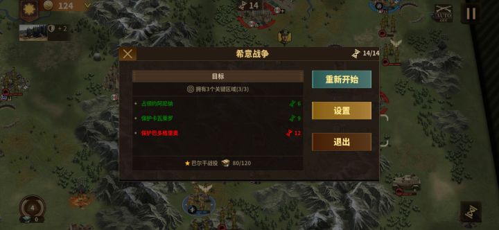 求各位大佬支招!!!感谢关卡任务简介:本关要占领6个红圈,下方的4个我可以完成,不过上方的2个红圈离我贼远,打完下面四个根本没时间再跑上去打剩下的2个。梳理了一下困难的点:1. 18回合不够用,打满18回合才勉强推完5个点2. 最后那个红圈附近还有个“科涅夫”!!!3. 任务有4个,基本上都是卡着时间点完成的,要是分兵北上的话,任务基本上完成不了。4. 北上的时候路过莫斯科附近,会被