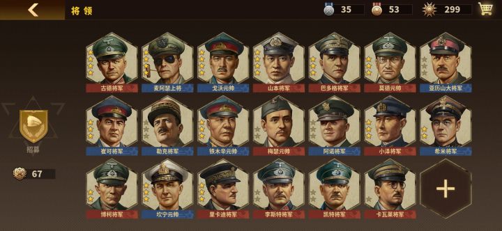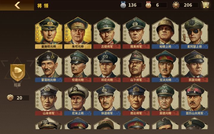 萌新建议选将(直观图),先入手古德和戈沃,其他按需求来步将最强山下,航空最强山本,海将最强邓尼,坦将分轻重,再不充钱的情况下古德第一轻坦将,隆美尔和蒙哥相差不大,炮将沃戈利布都可以拿