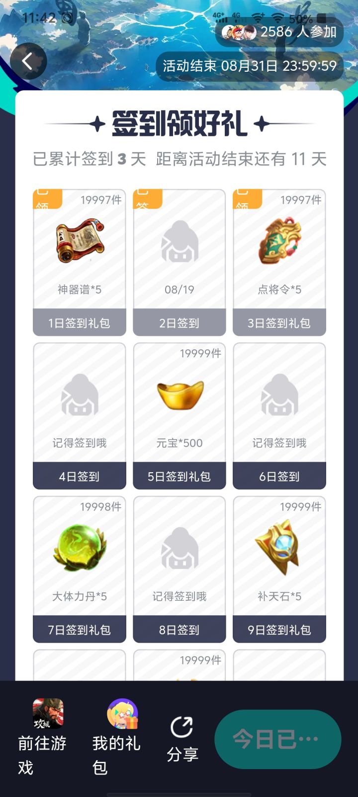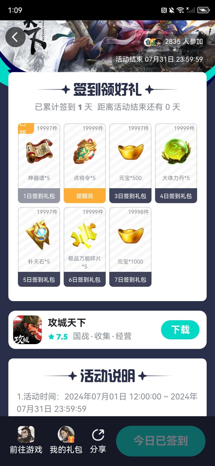 为啥第二天签到没有礼包