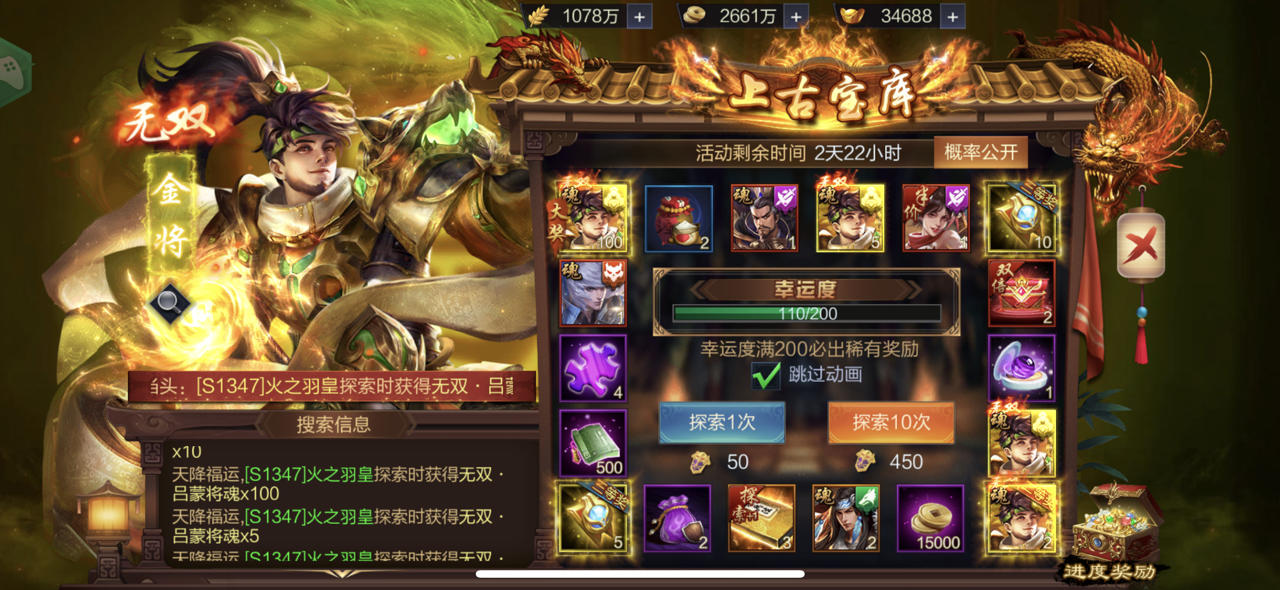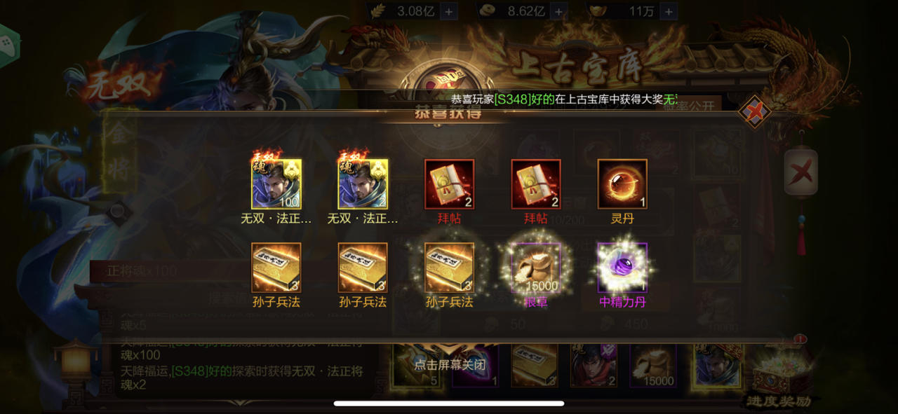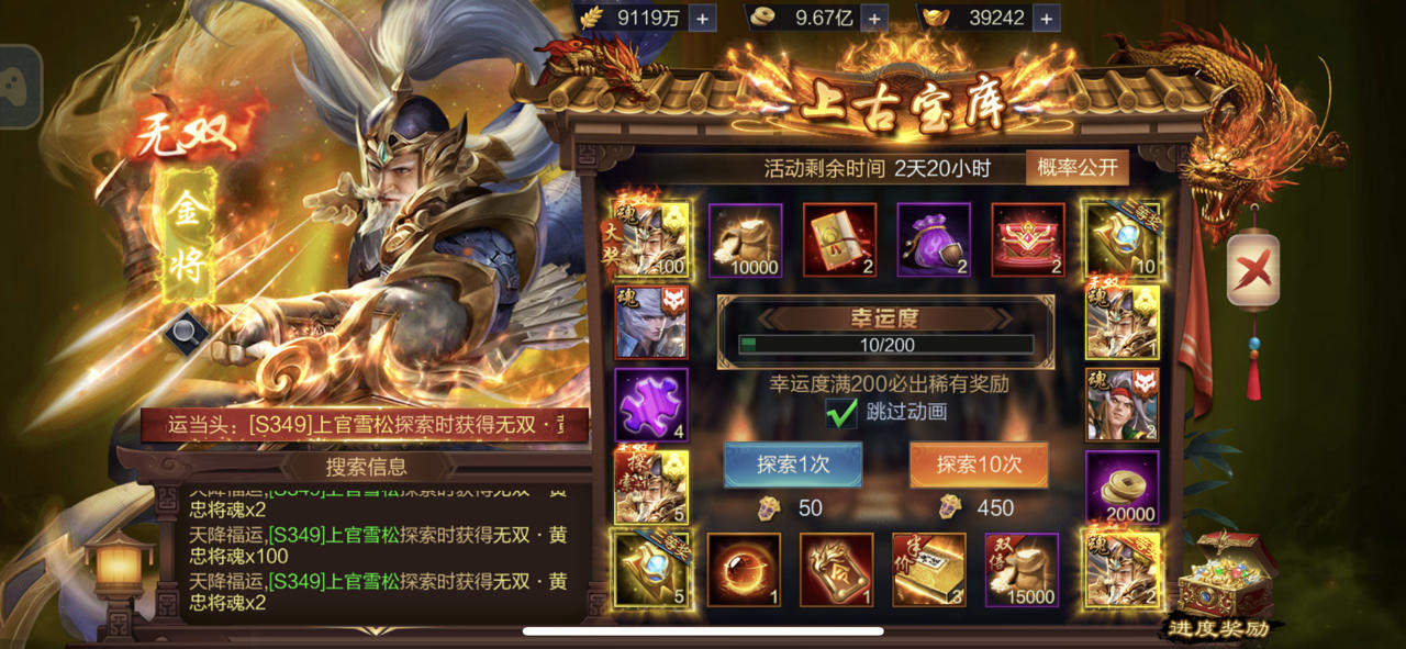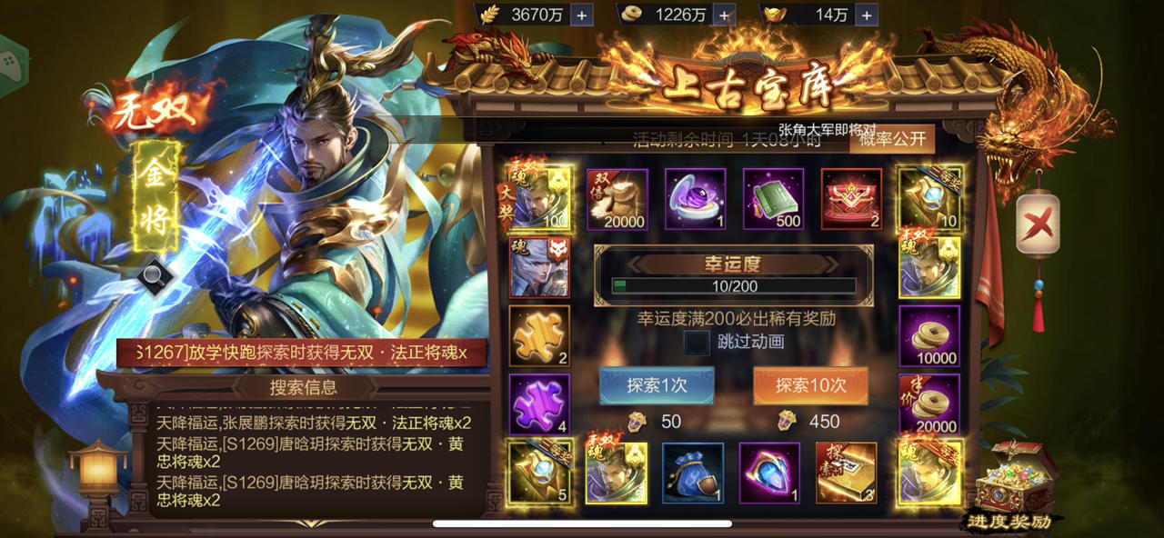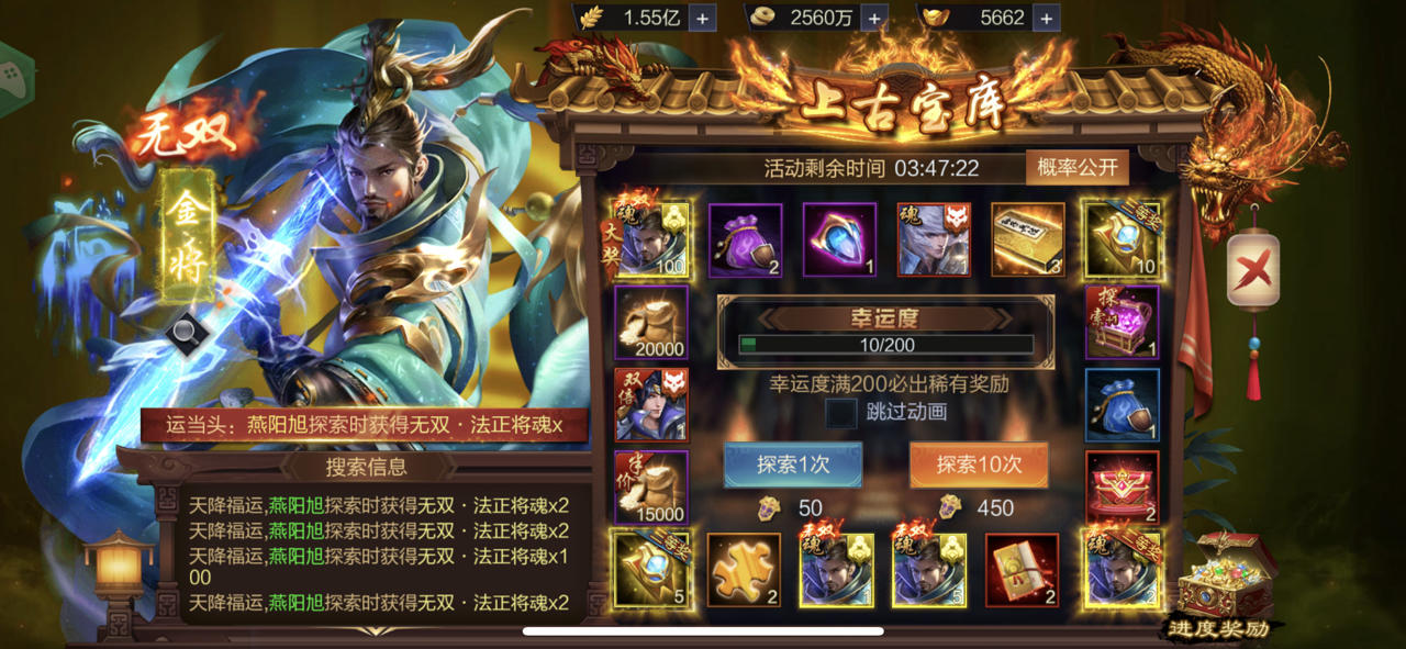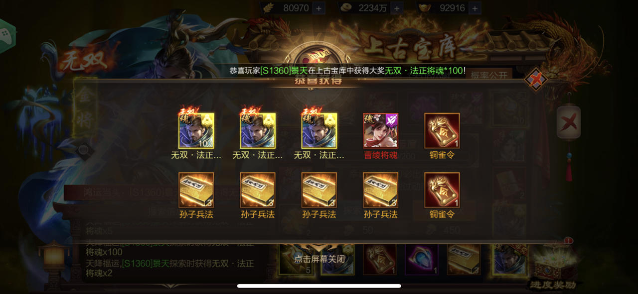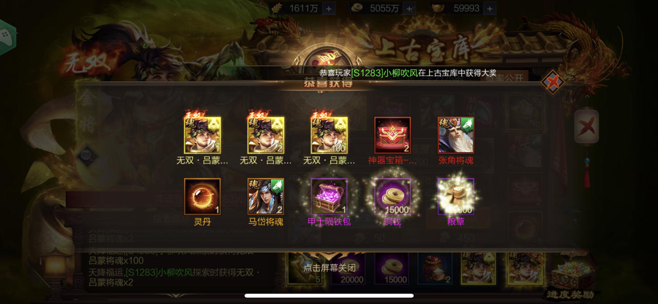 【上古宝库】欧皇晒图活动20230912期——无双·关羽、无双·张飞(双武将)
