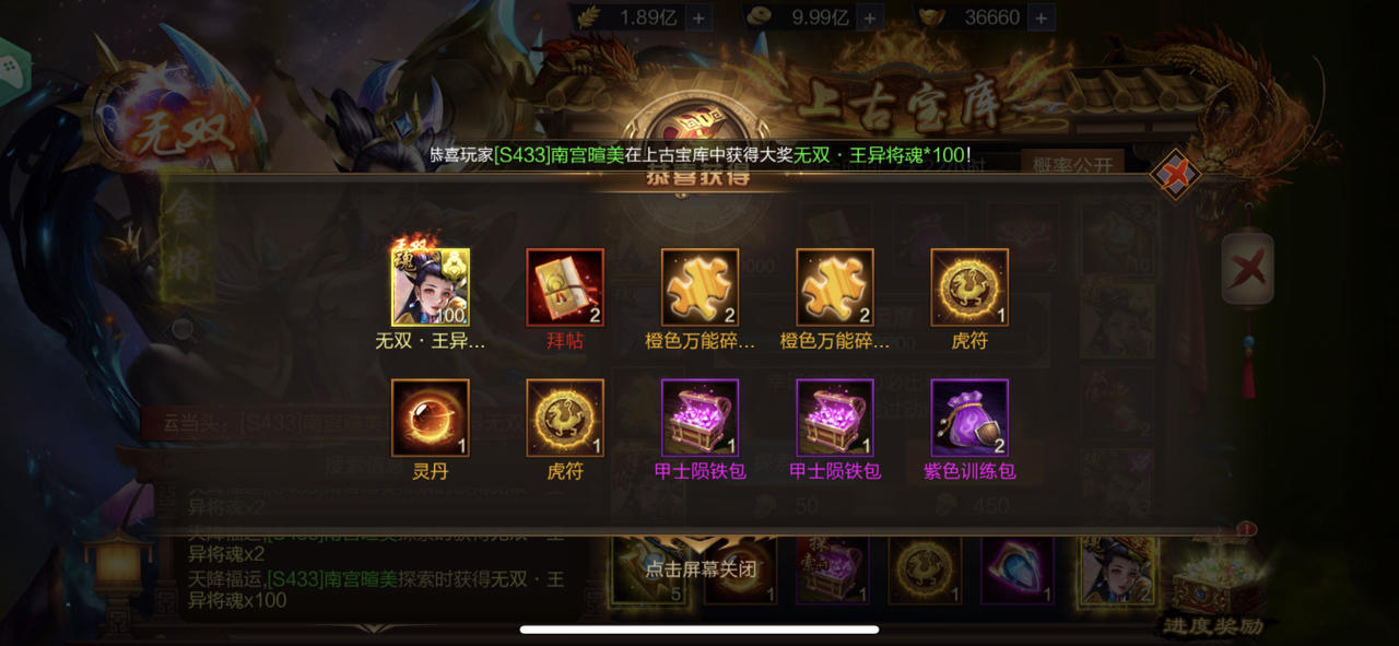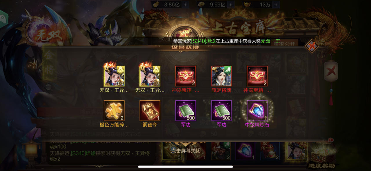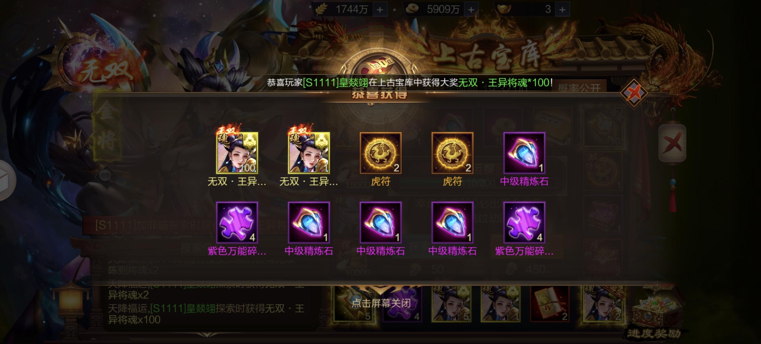 【上古宝库】欧皇晒图活动20230919期——无双·王异、无双·董卓、无双·乐进、无双·陈到(四选一)