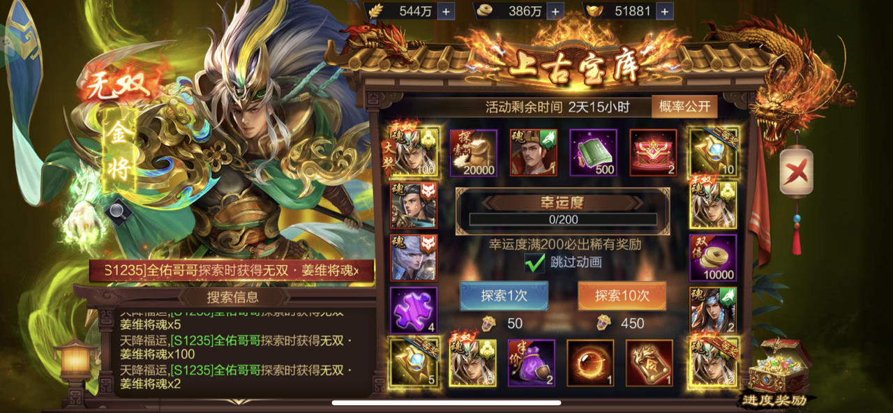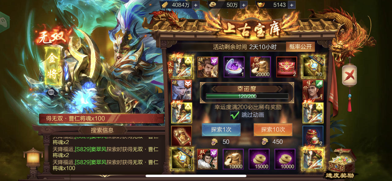 【上古宝库】欧皇晒图活动20230808期——无双·曹丕、无双·甄姬(双武将都可抽)