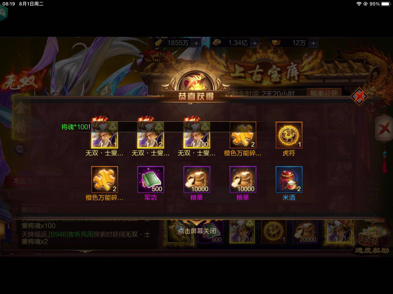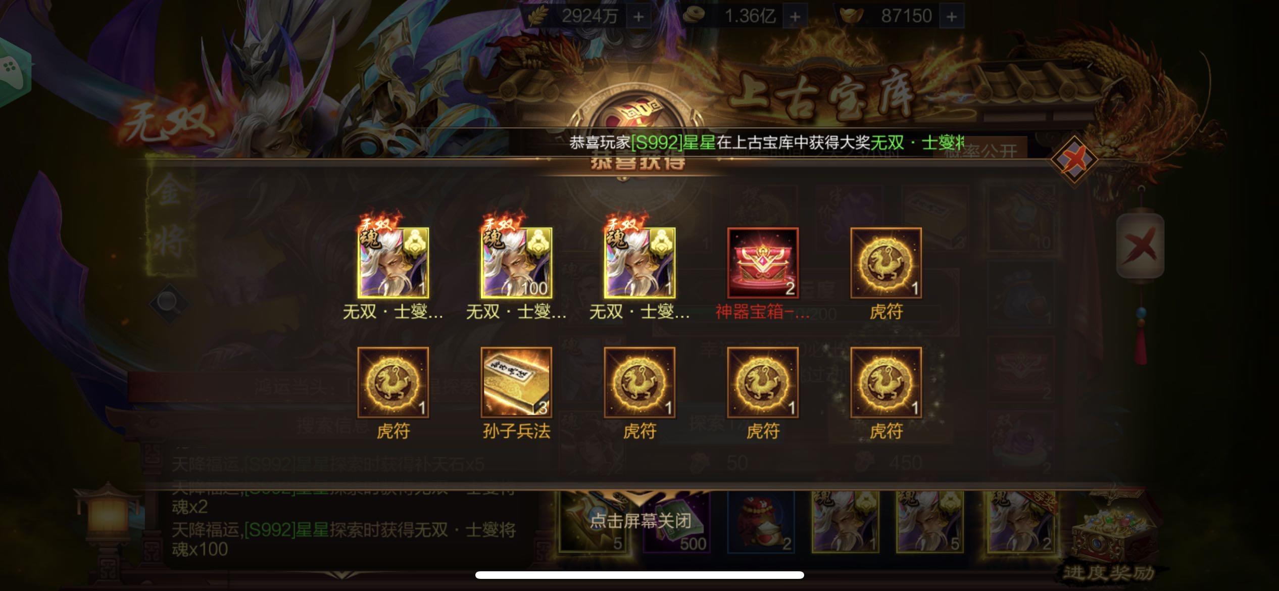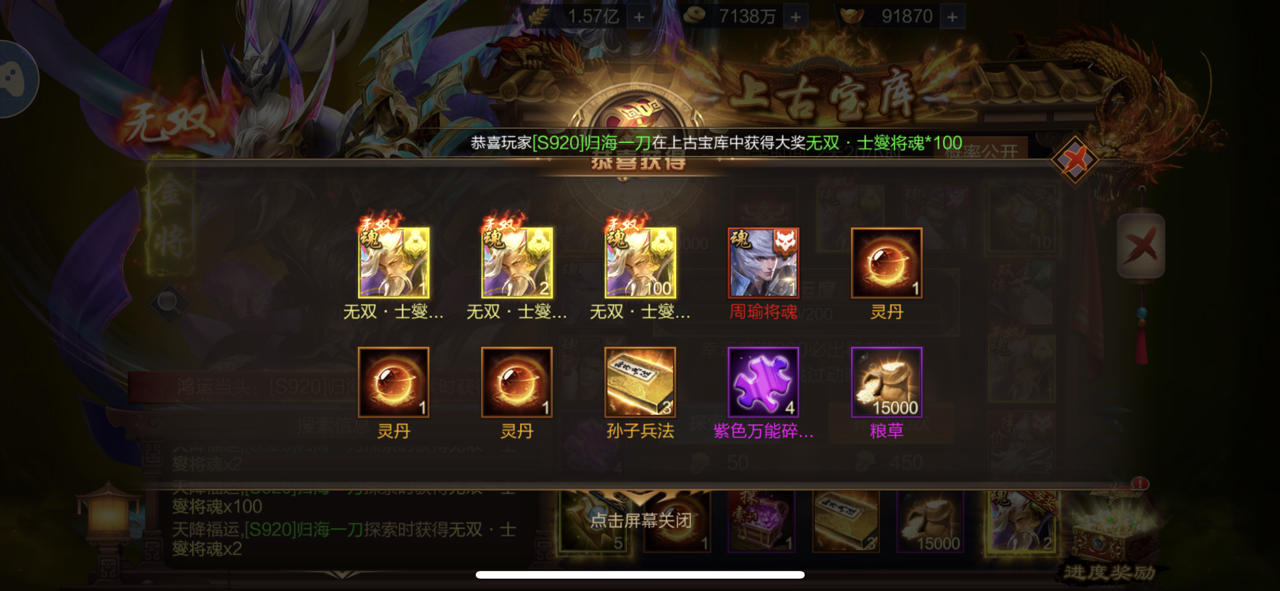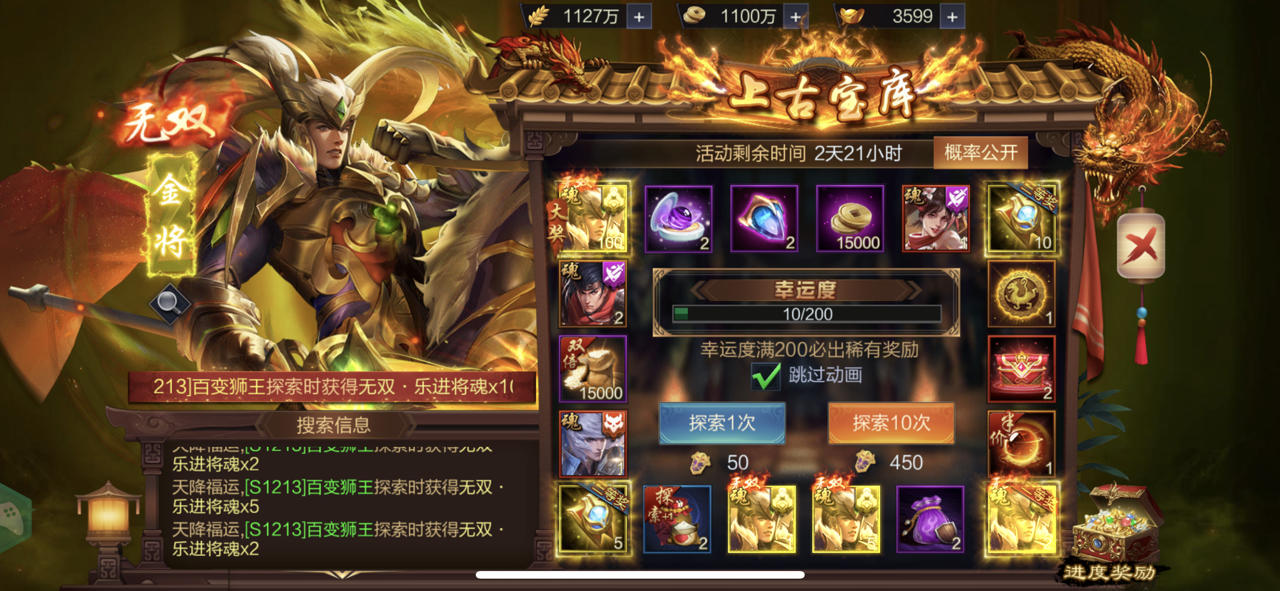 S1213 百变狮王 无双乐进中得大奖,第二次中奖太开心了。