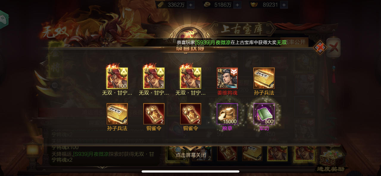 【上古宝库】欧皇晒图活动20230613期——无双李儒&无双甘宁