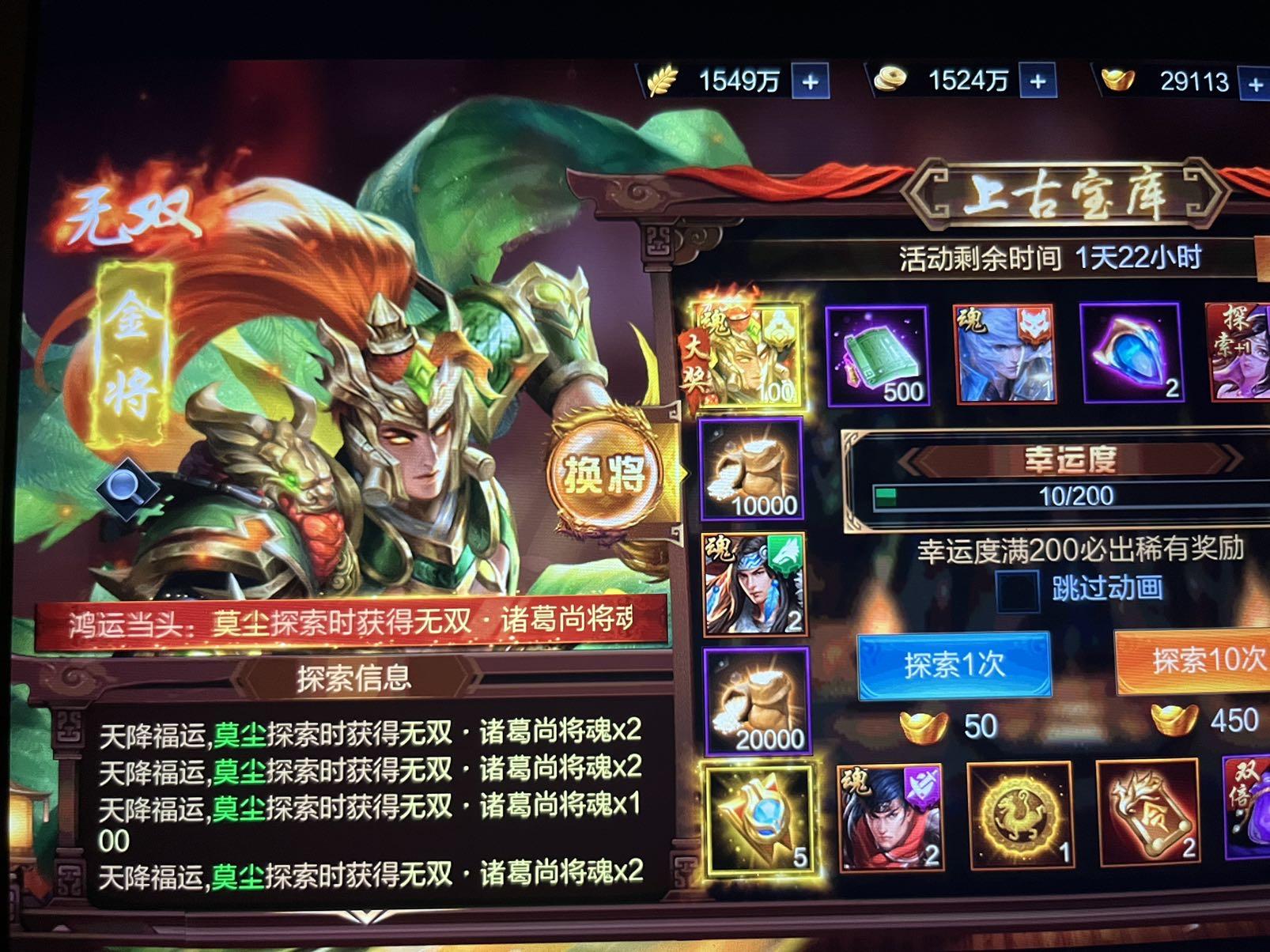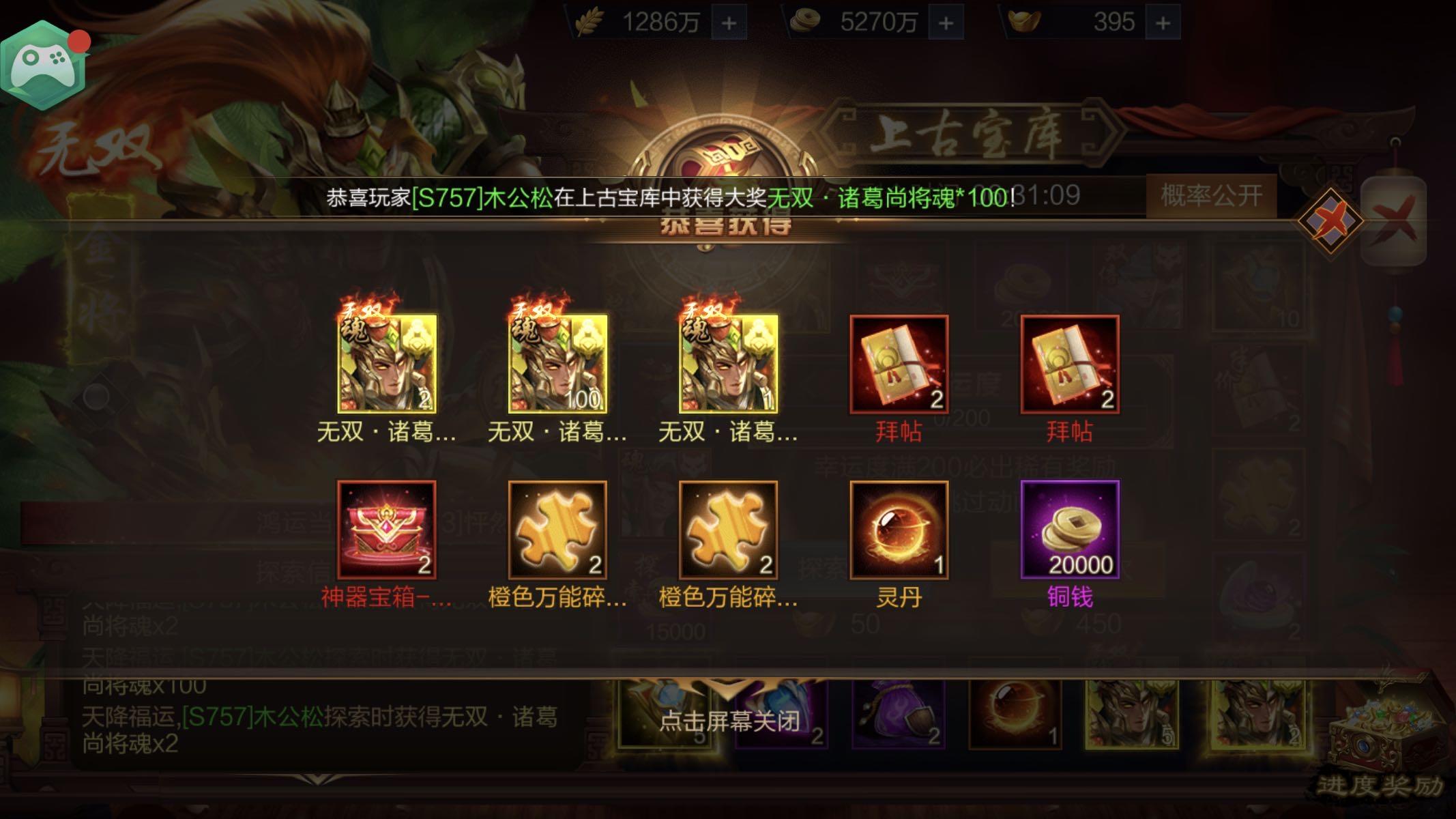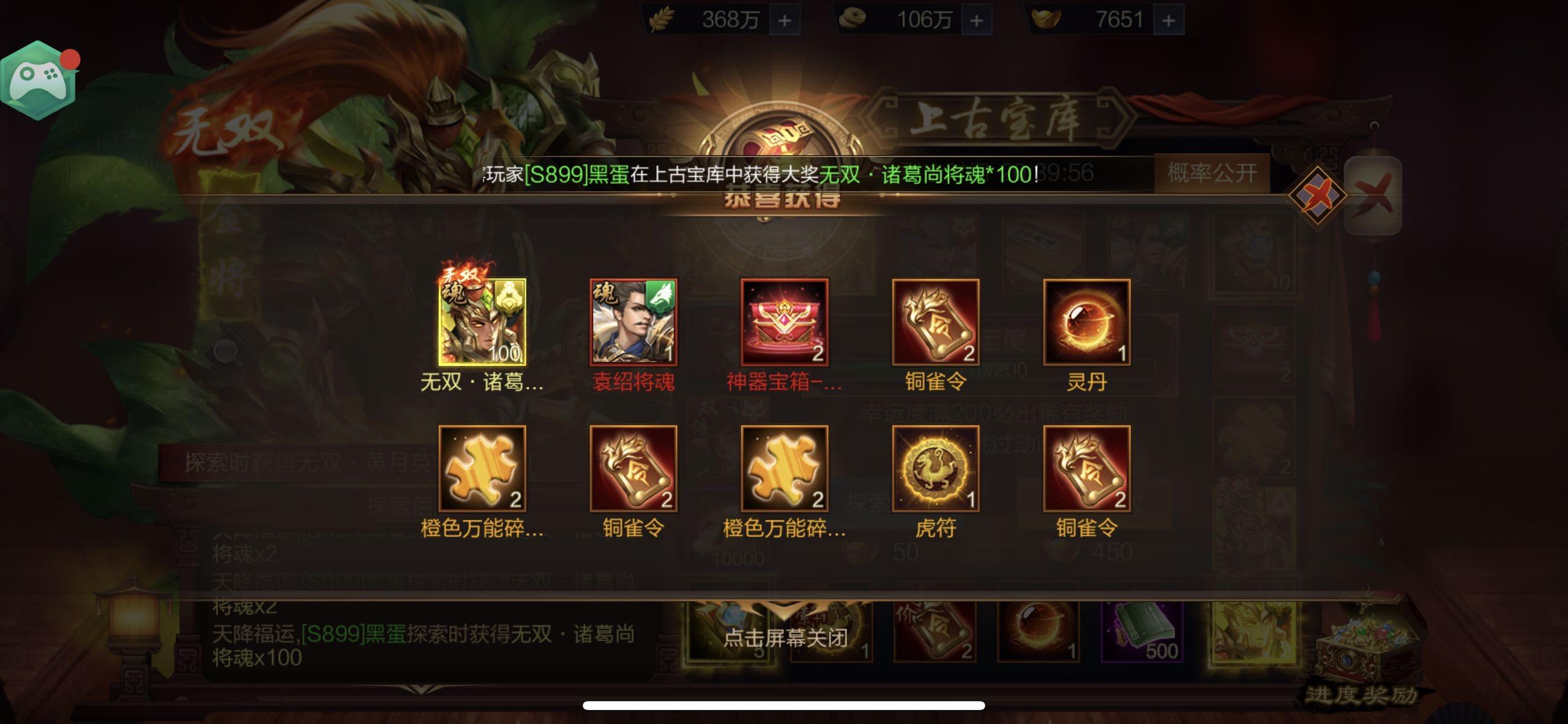 【S950】莫尘+【上古宝库】欧皇晒图无双诸葛尚中大奖