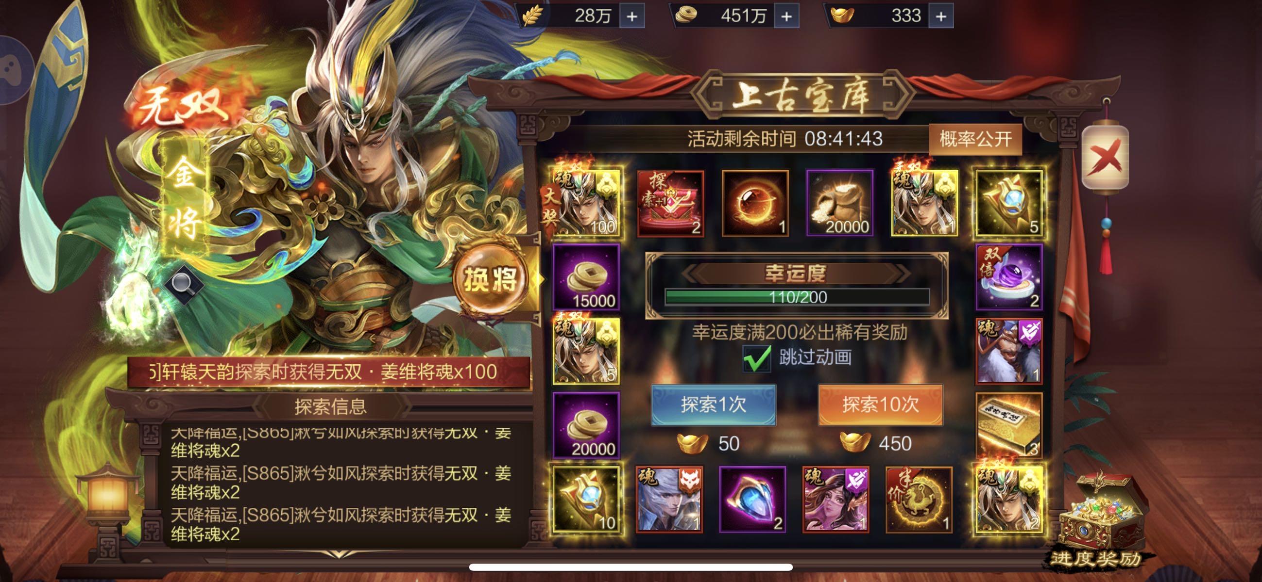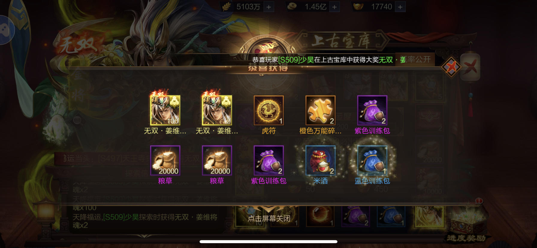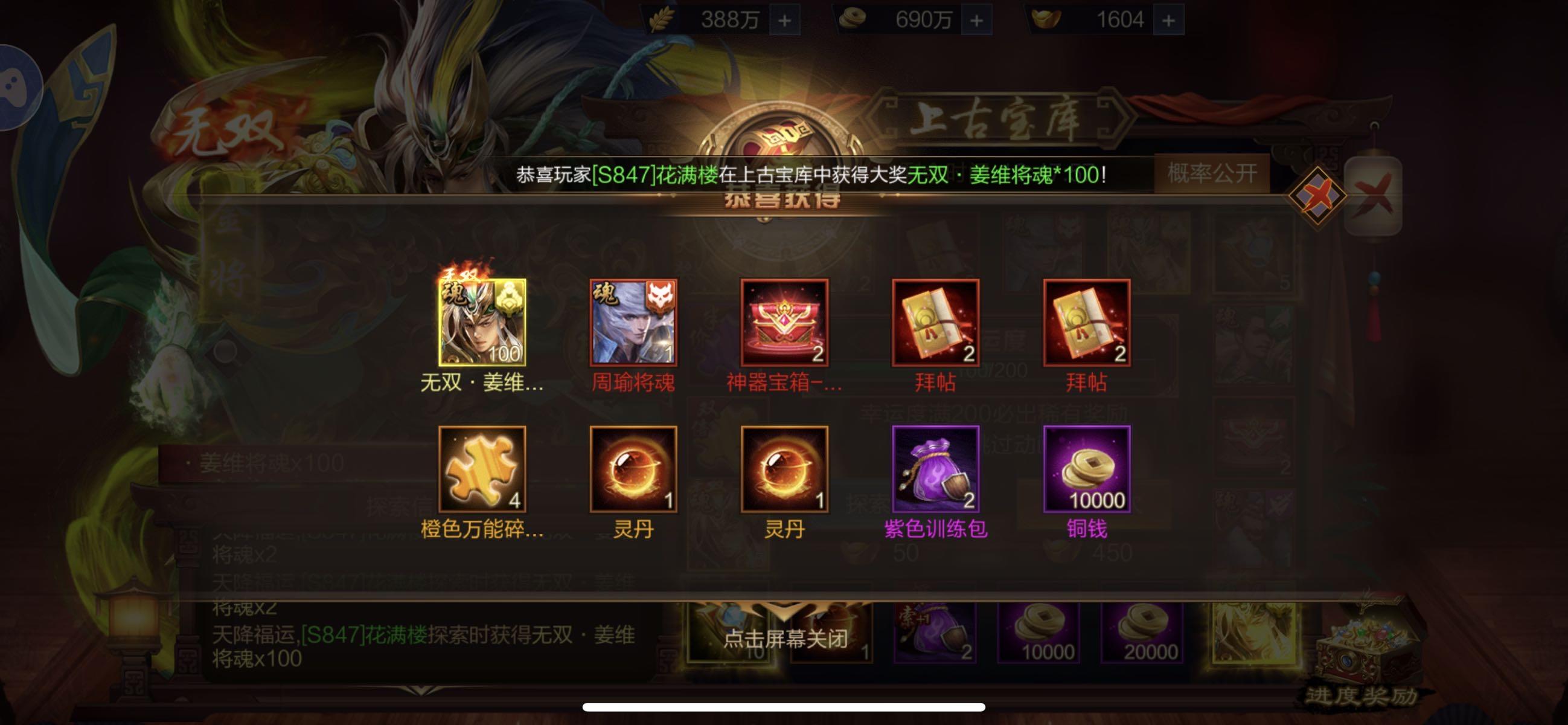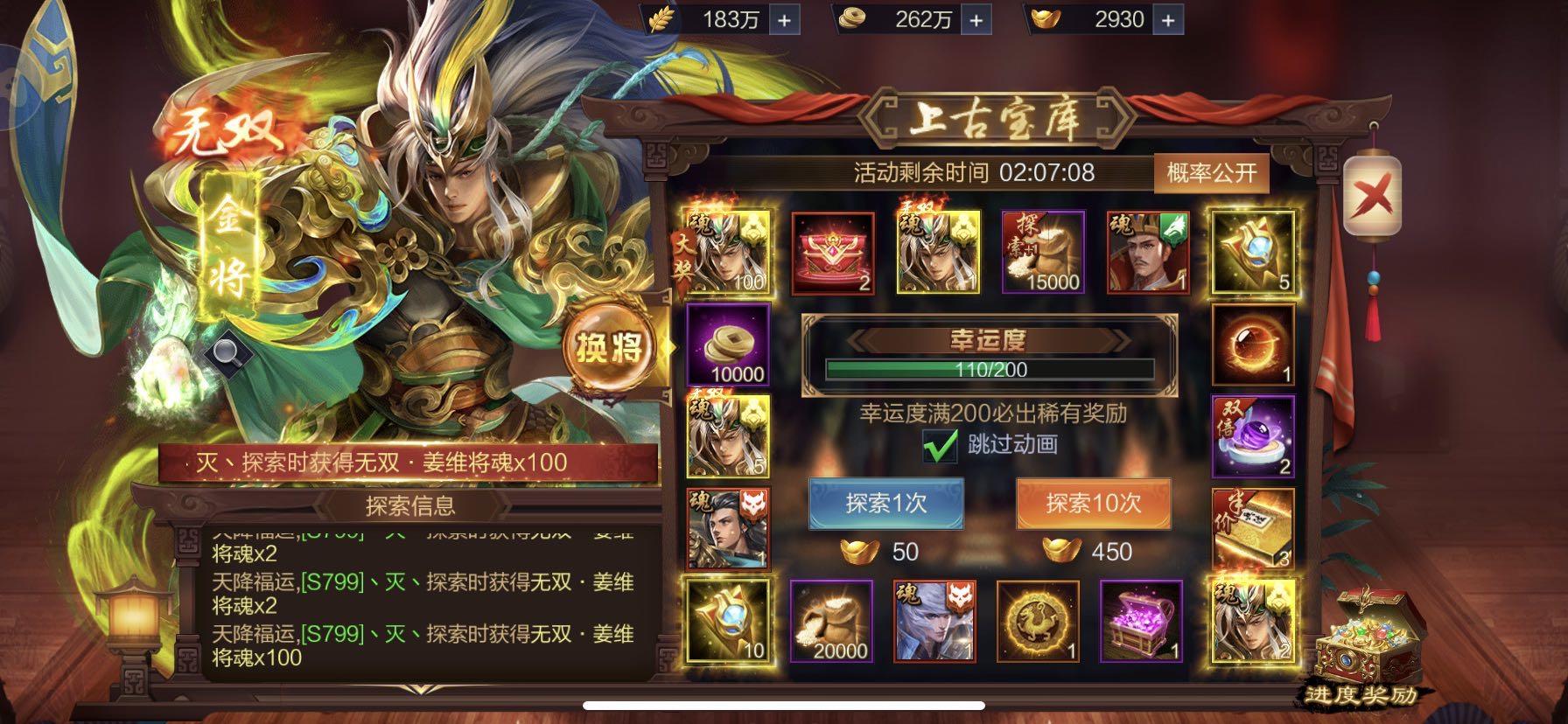 【s721】意亂天下+【上古宝库】欧皇晒图无双关羽中大奖