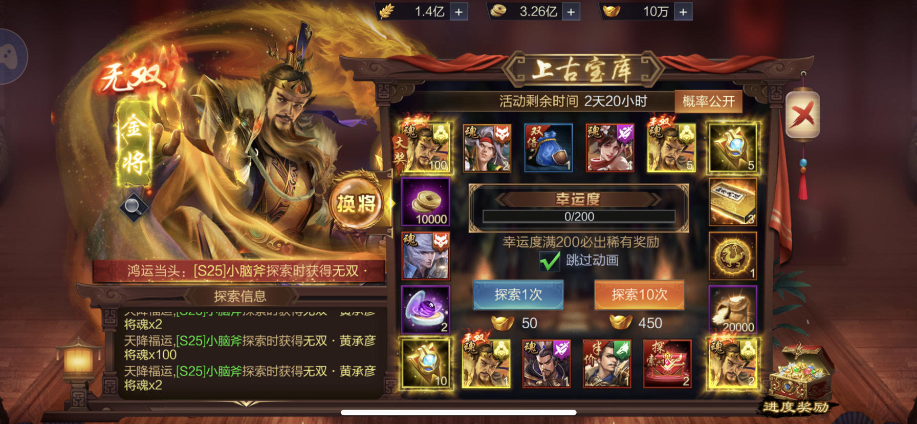 【上古宝库】欧皇晒图活动20221220期——无双黄盖&无双鲁肃