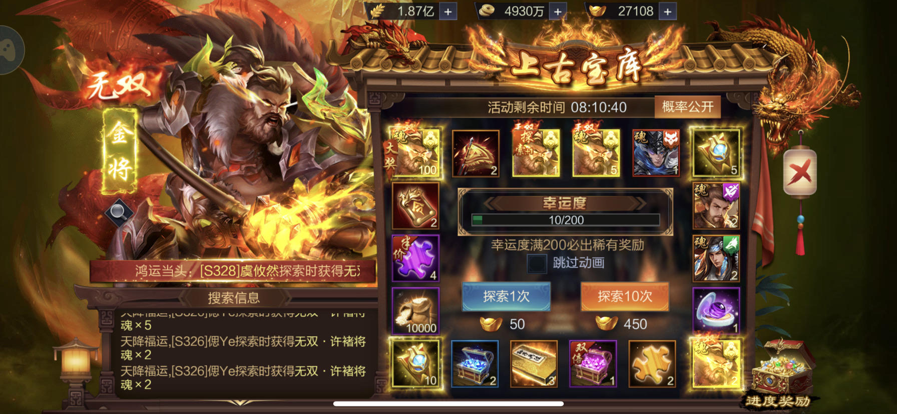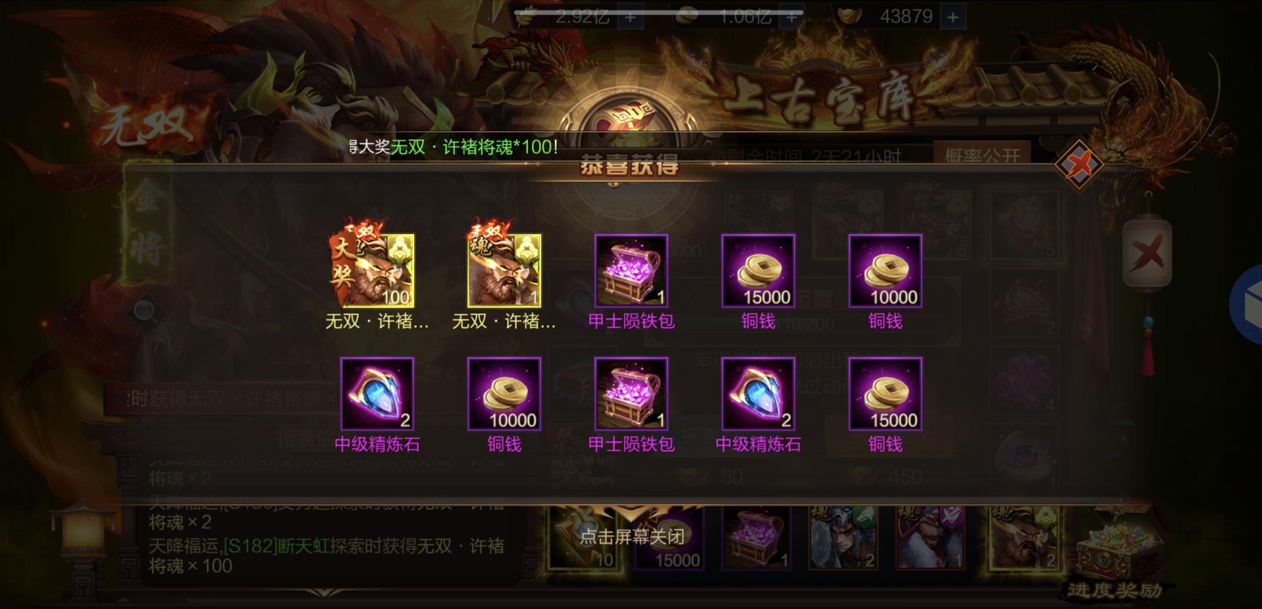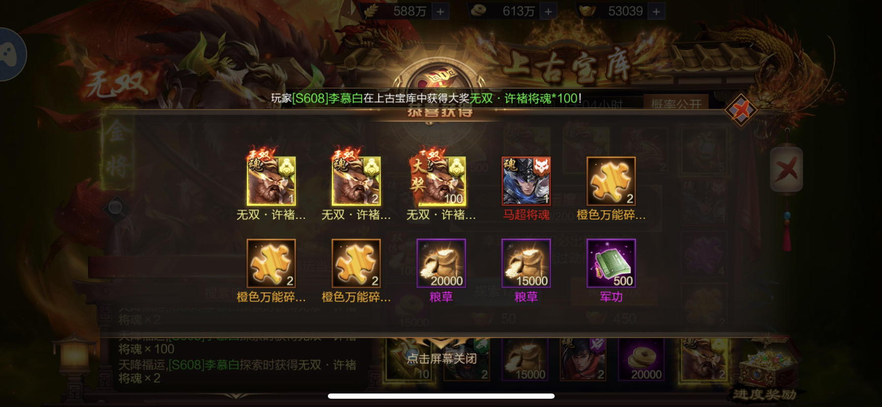 #全服欧皇#无心插柳柳成荫,无双许褚中奖了。S182断天虹