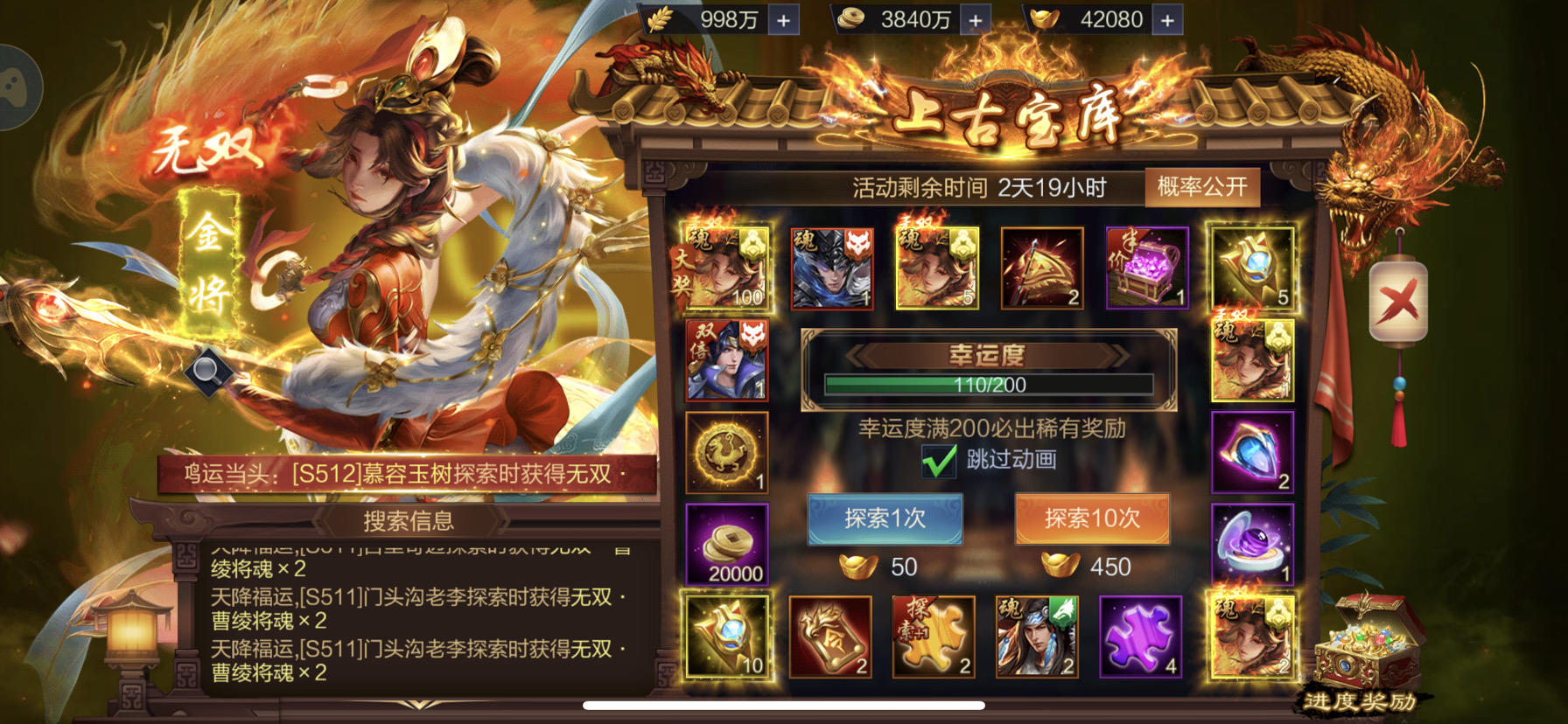 2800元宝抽的周瑜大奖,那时候不知道taptap,没有截图,怎么办?这玩意后台有记录不?S610 叶慕灵