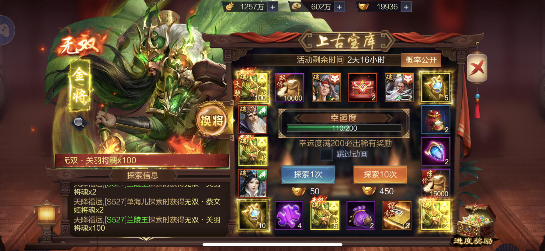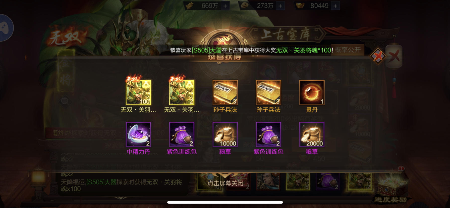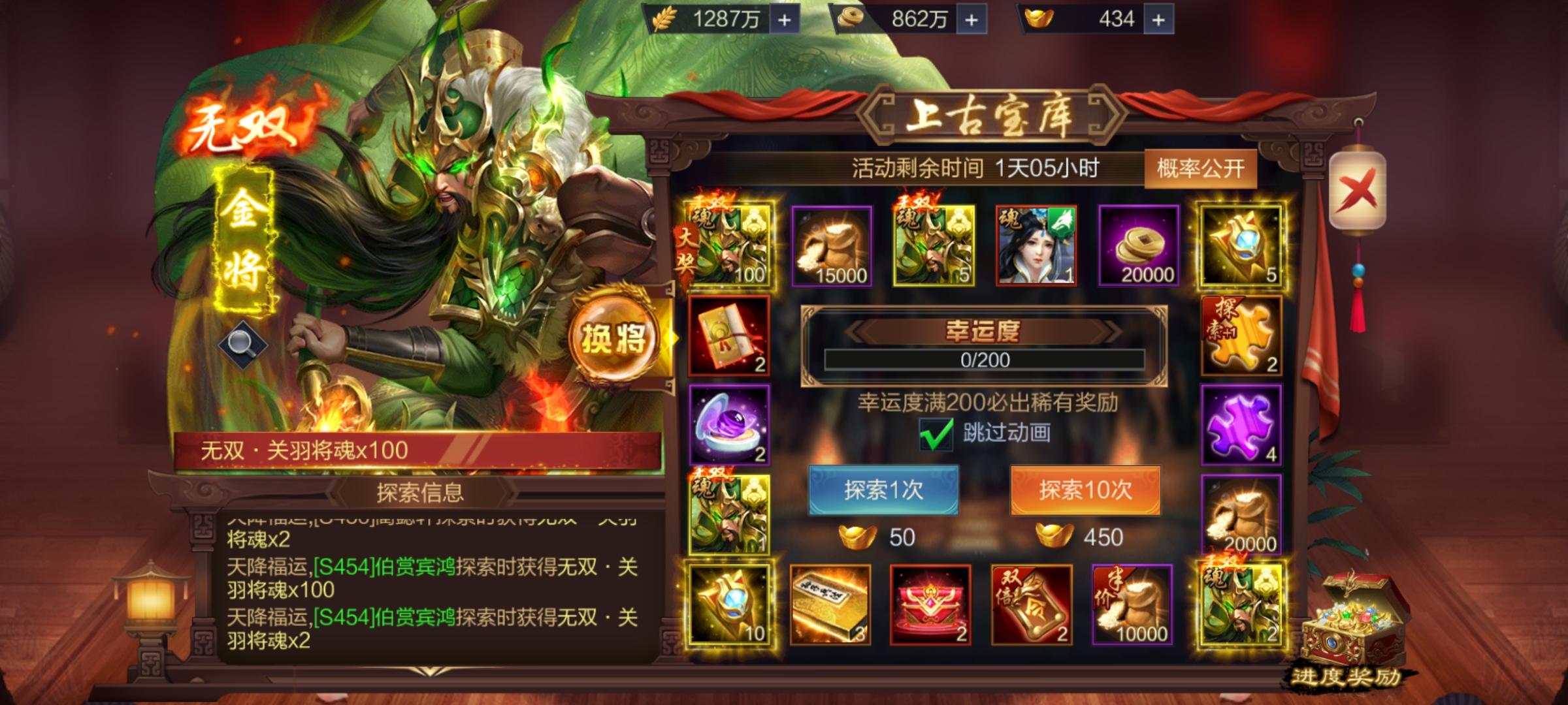 S505皇甫烨烨,第一个金奖中了无双关羽