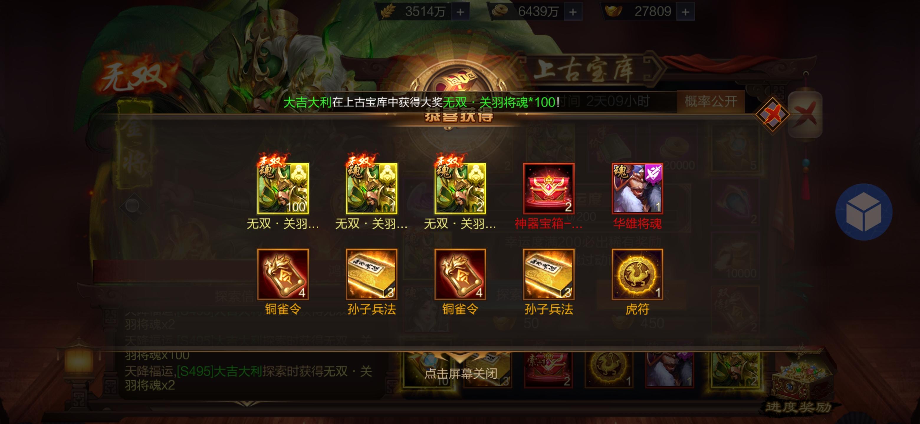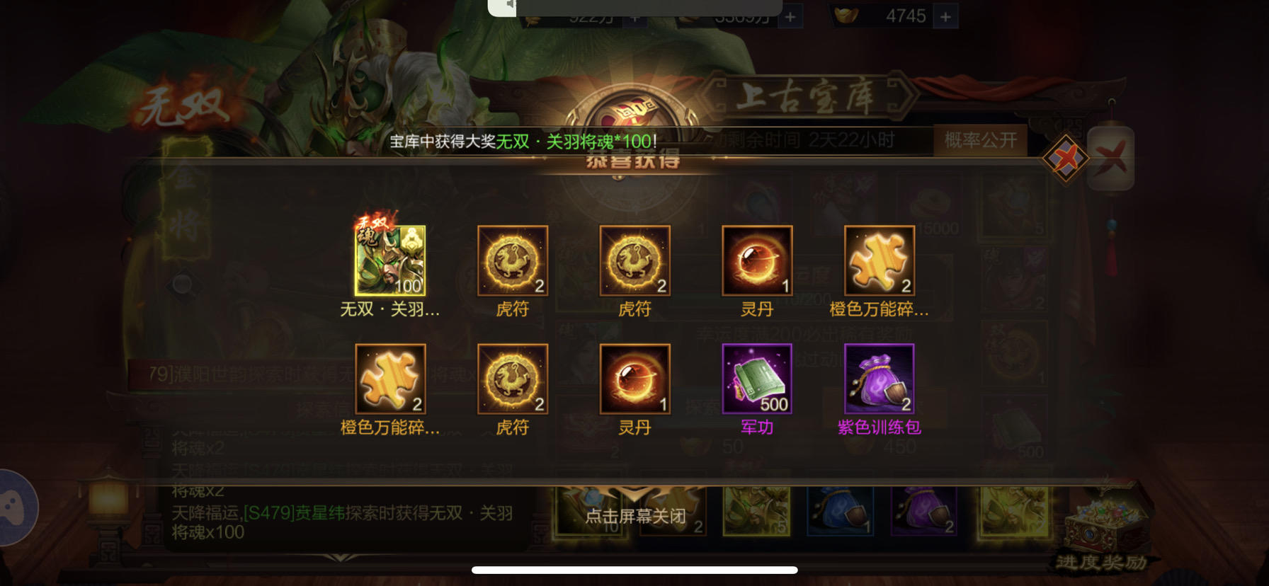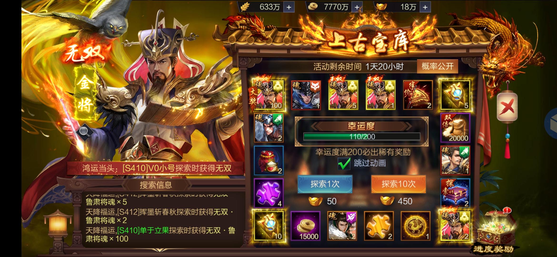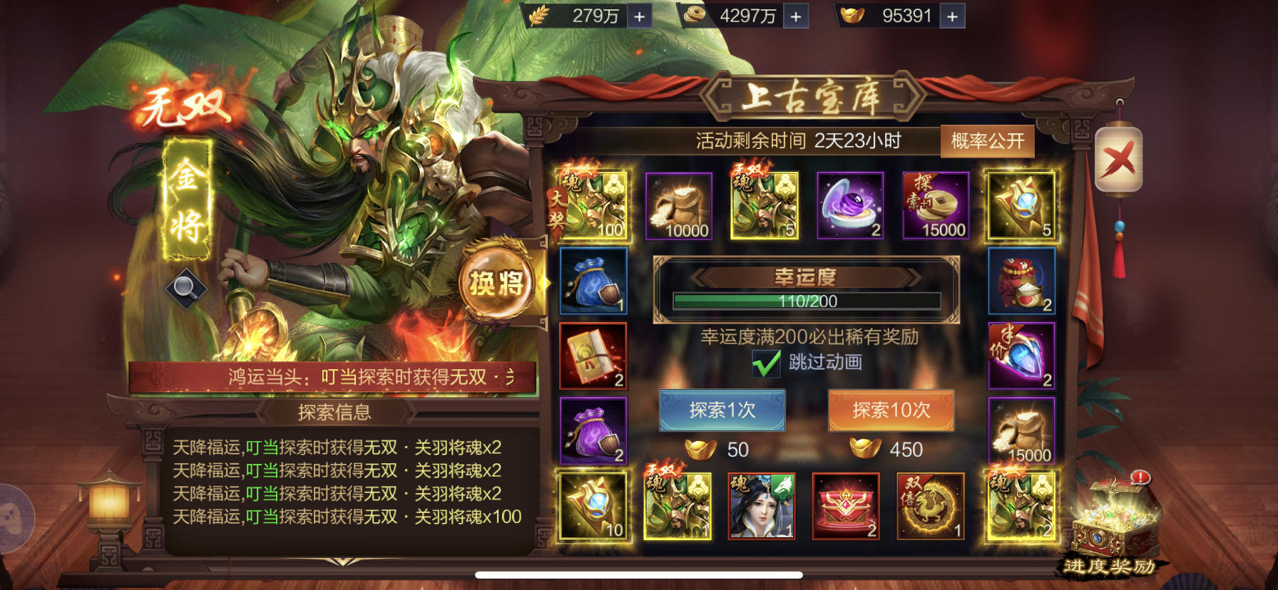 S505皇甫烨烨,第一个金奖中了无双关羽