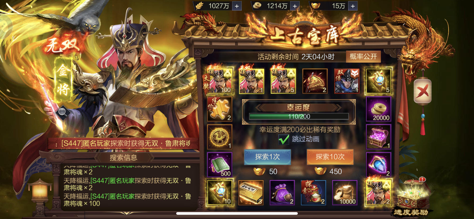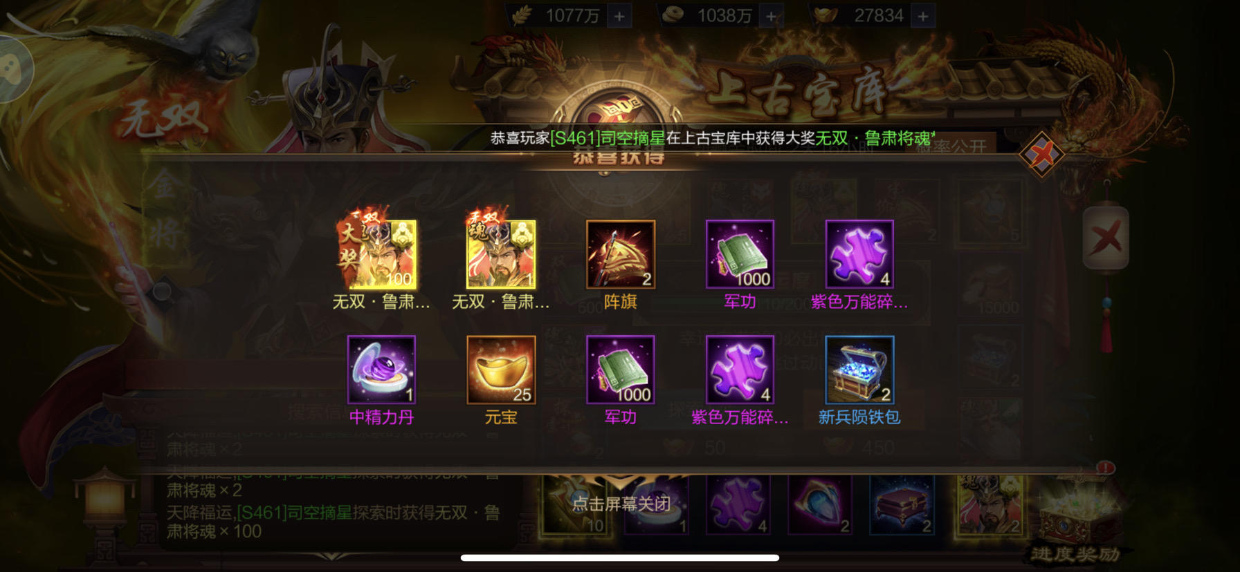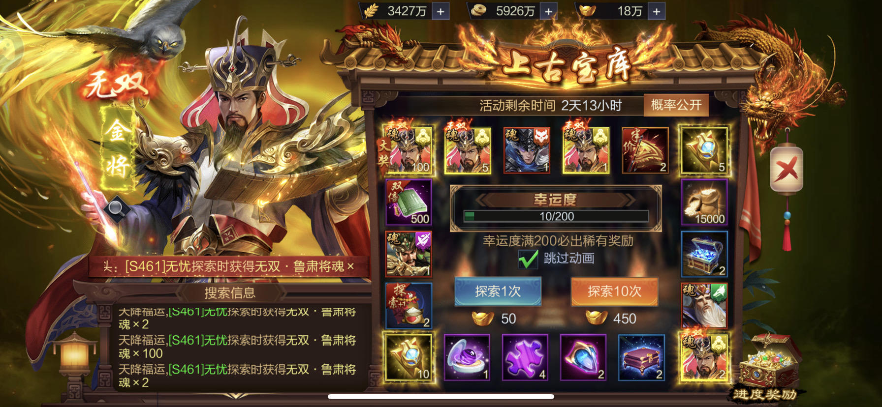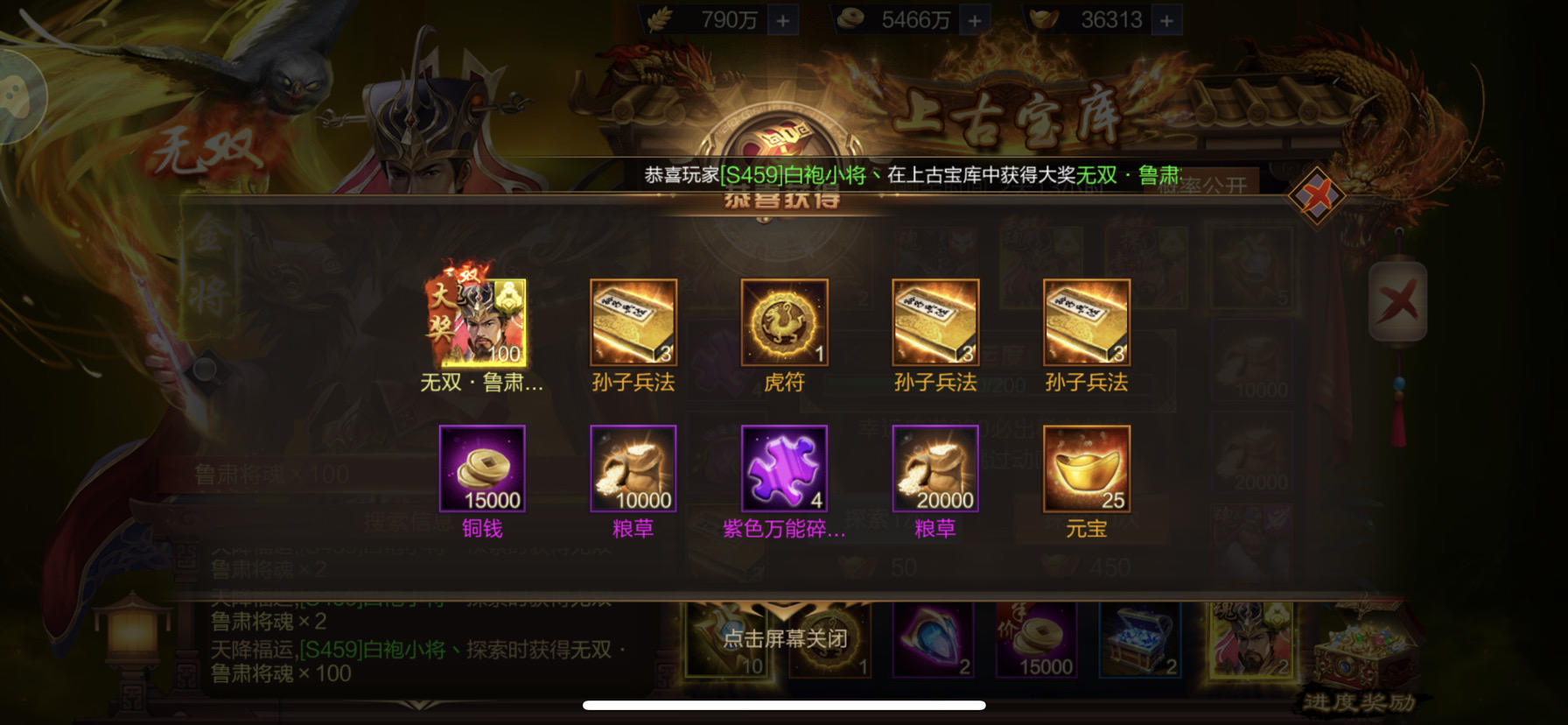 #全服欧皇# 区服:S459 角色名:白袍小将丶