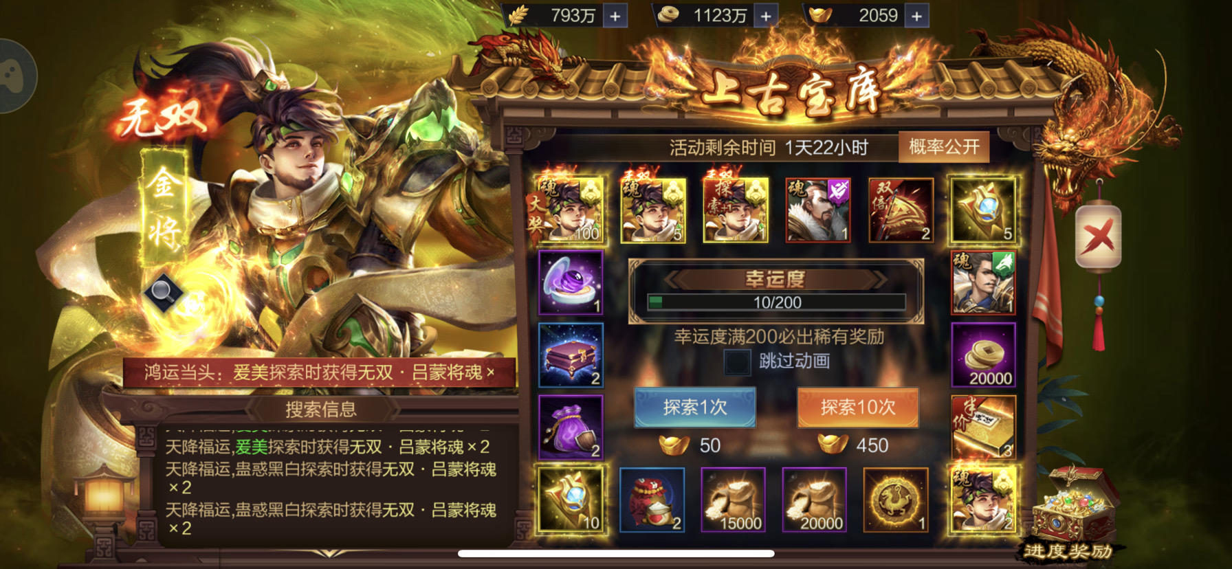 S396 寒江孤雪欧皇中大奖,无双法正。可惜忘记截图了,只有这些佐证了。求十七安排~
