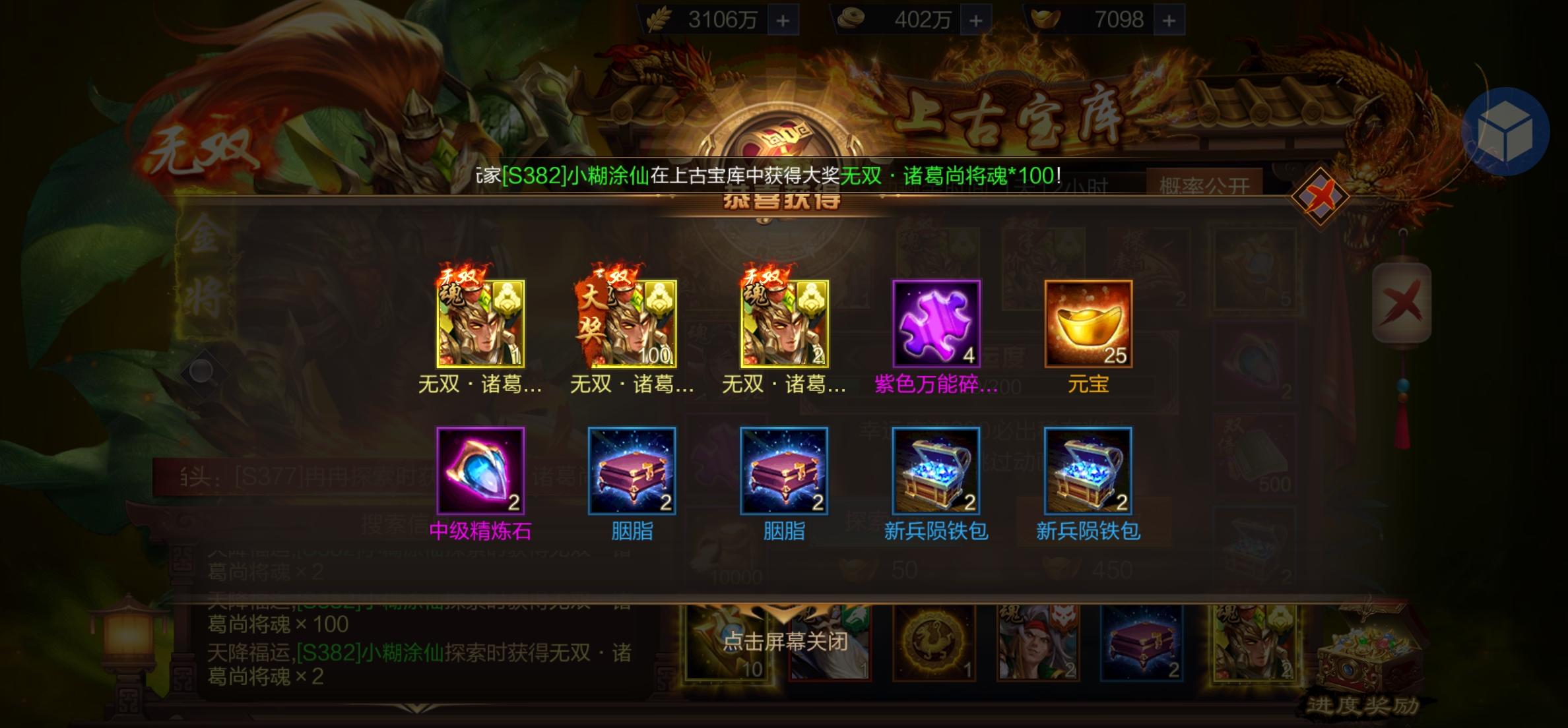 #全服欧皇#S382 小糊涂仙哈哈,来晚了,诸葛尚大奖一枚。第二次中大奖开心😁