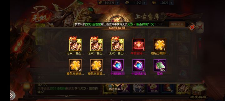 攻城天下非常给力,不氪金也能中大奖,我会一直支持的,70.80的伙伴们赶快重温三国梦