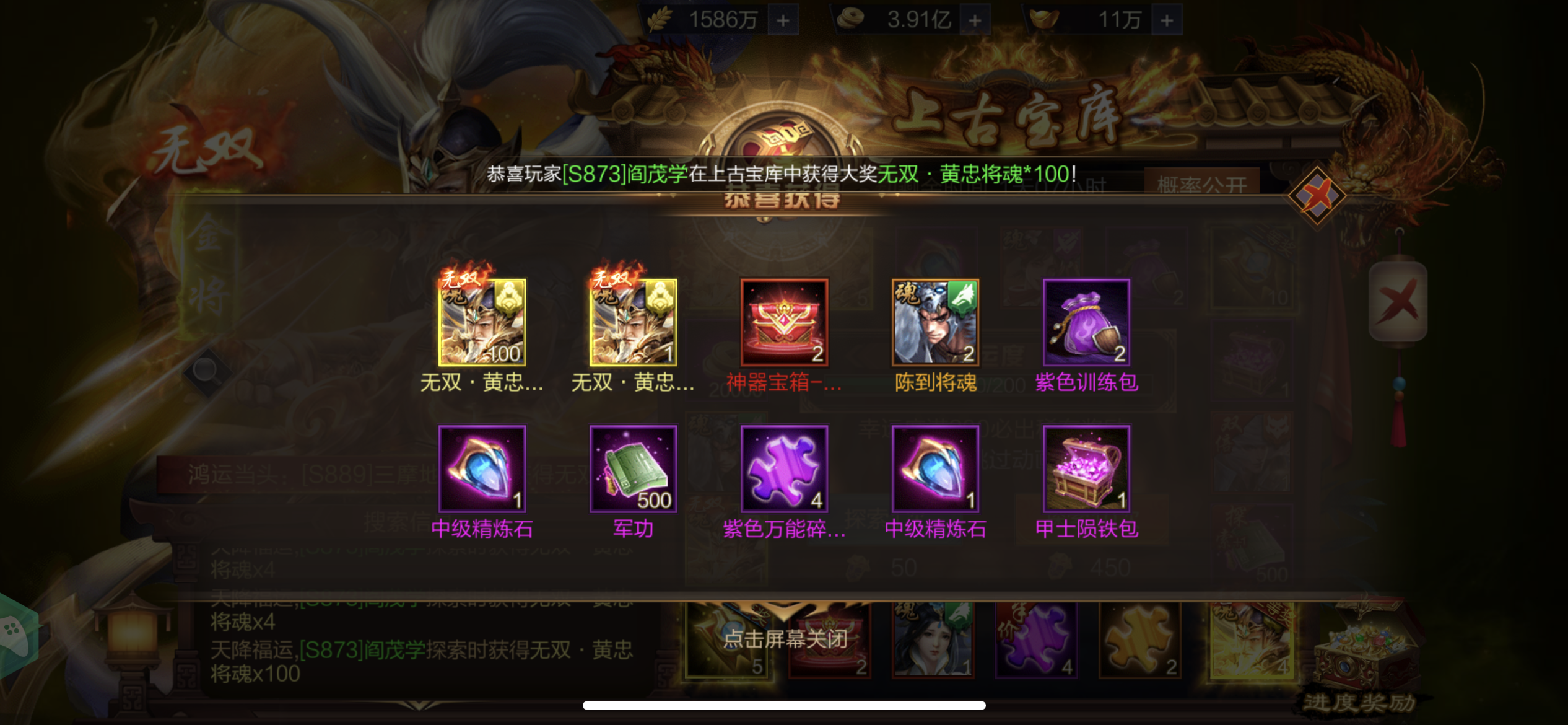 【上古宝库】欧皇晒图活动20231128期——无双·张昭、 无双·黄忠 、无双·乐进、 无双·吕蒙